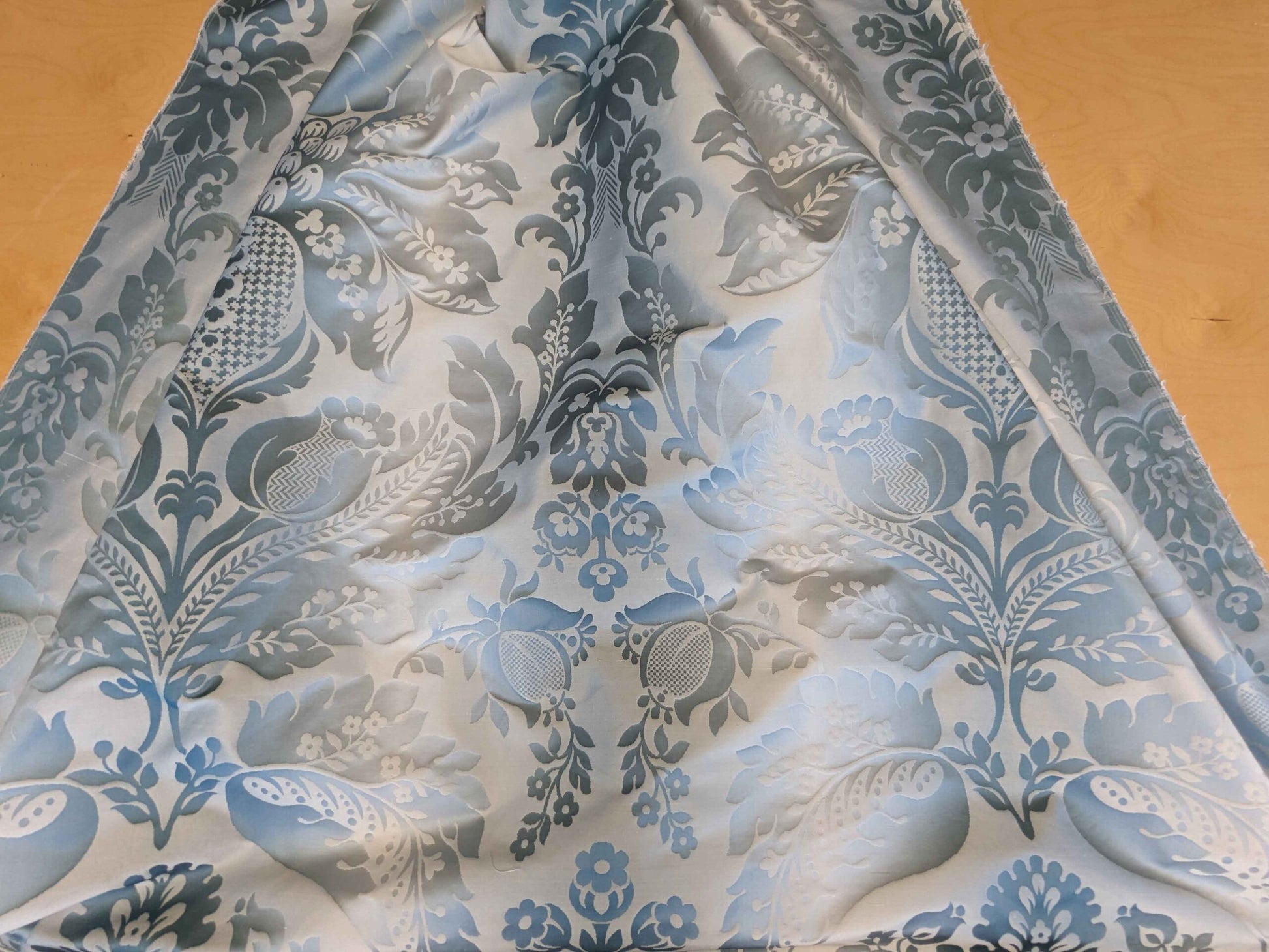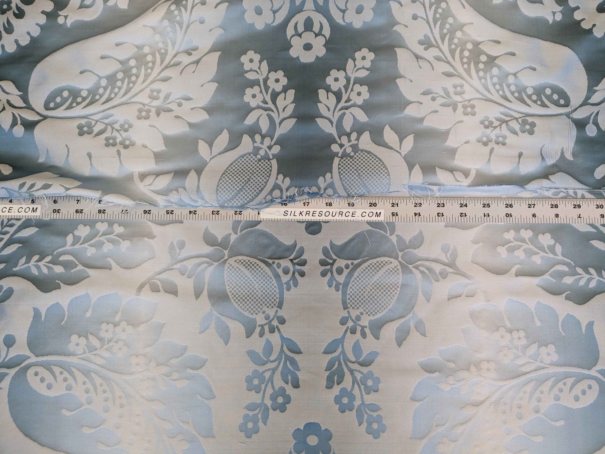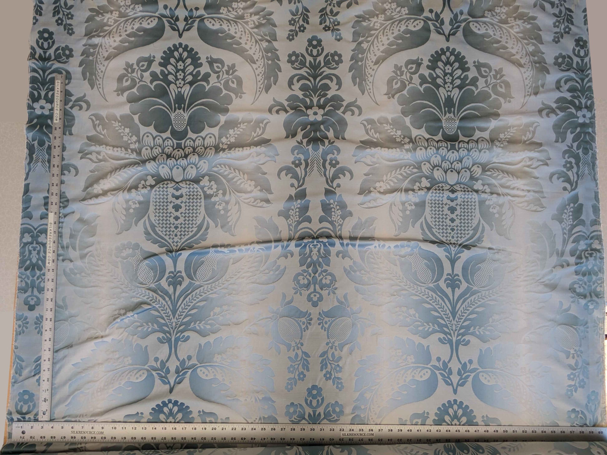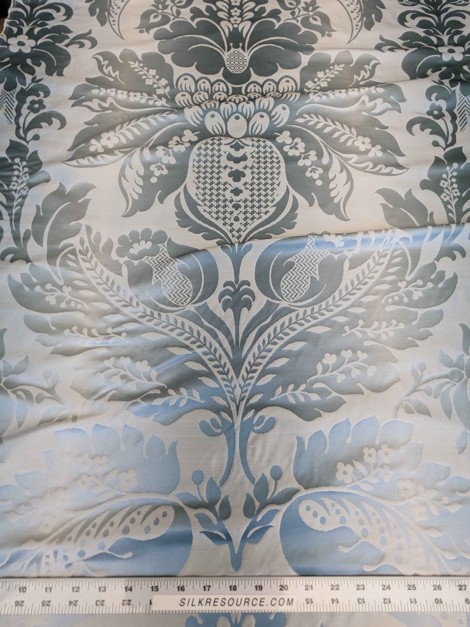 by yard Scalamandre Damask Silk Blend Silver Blue Gray White Botanical Floral Stripe French Renaissance