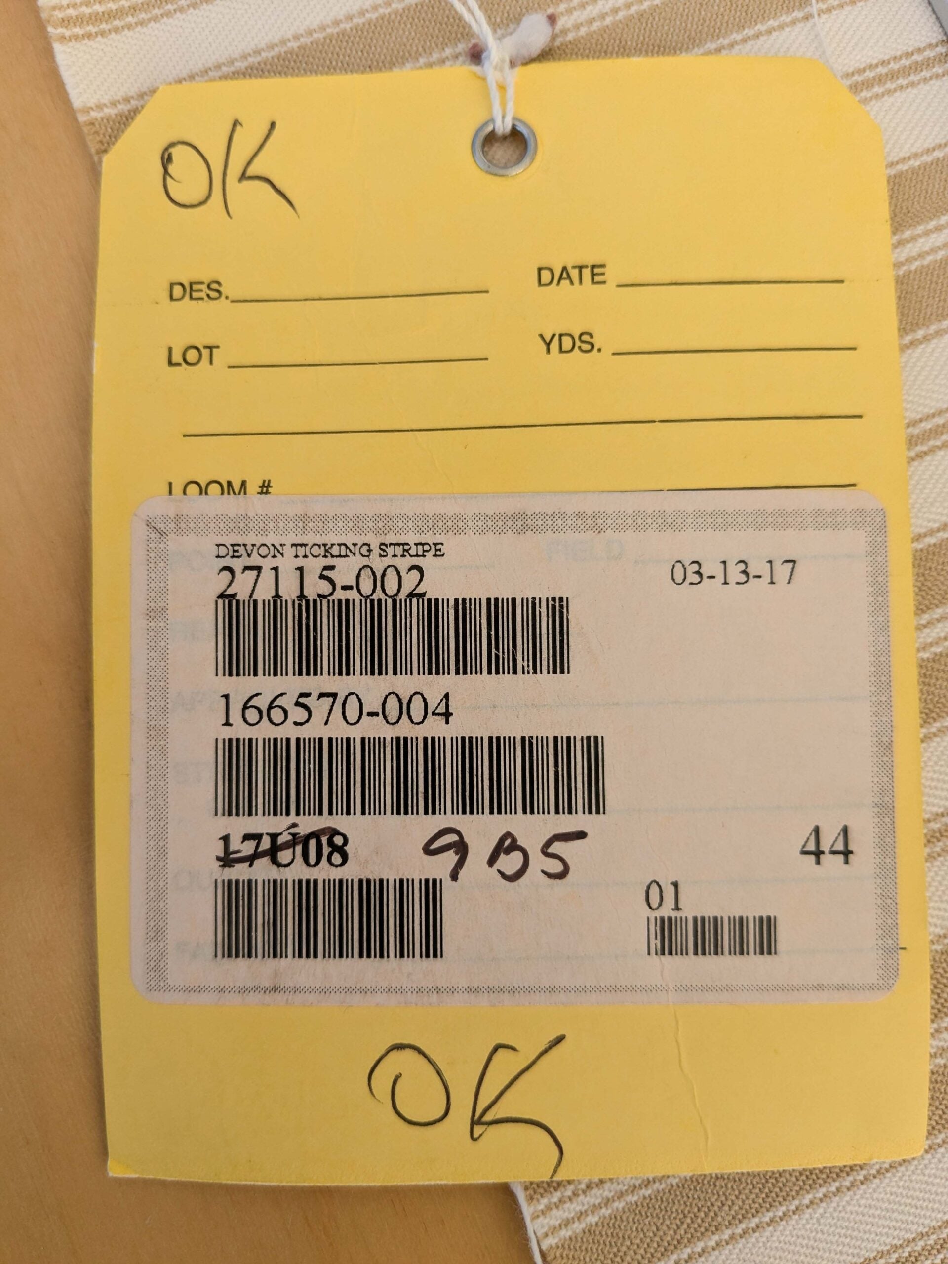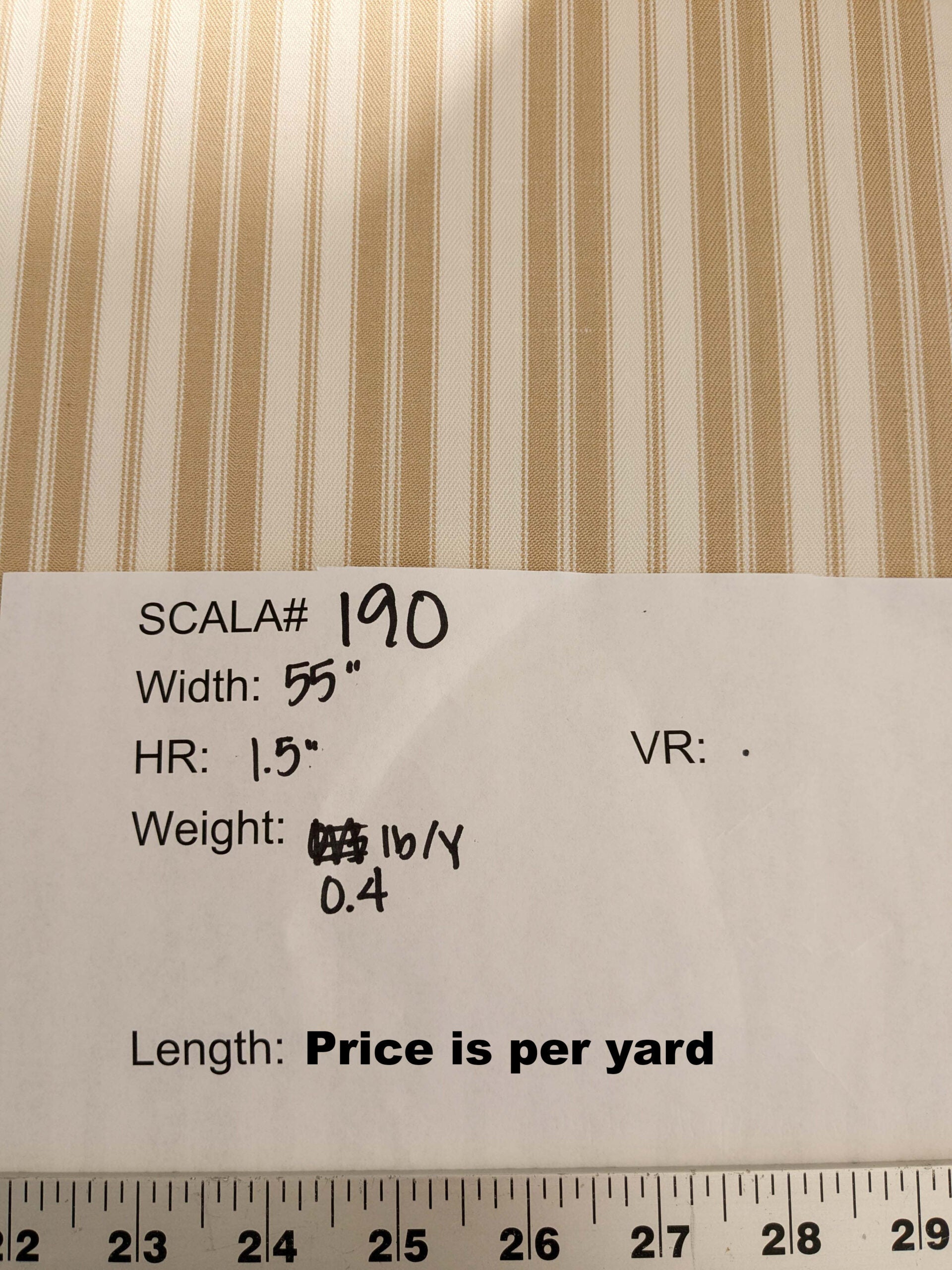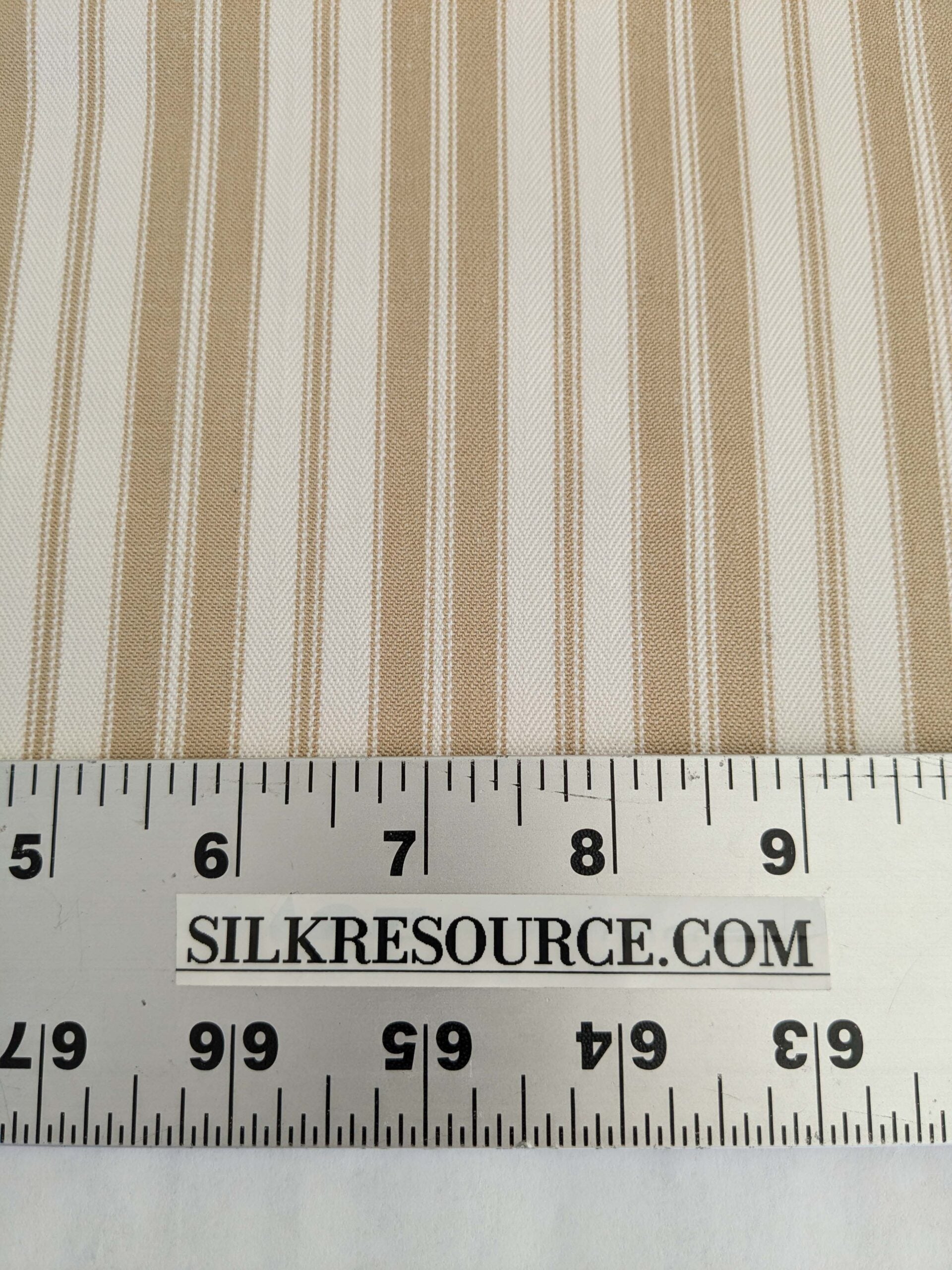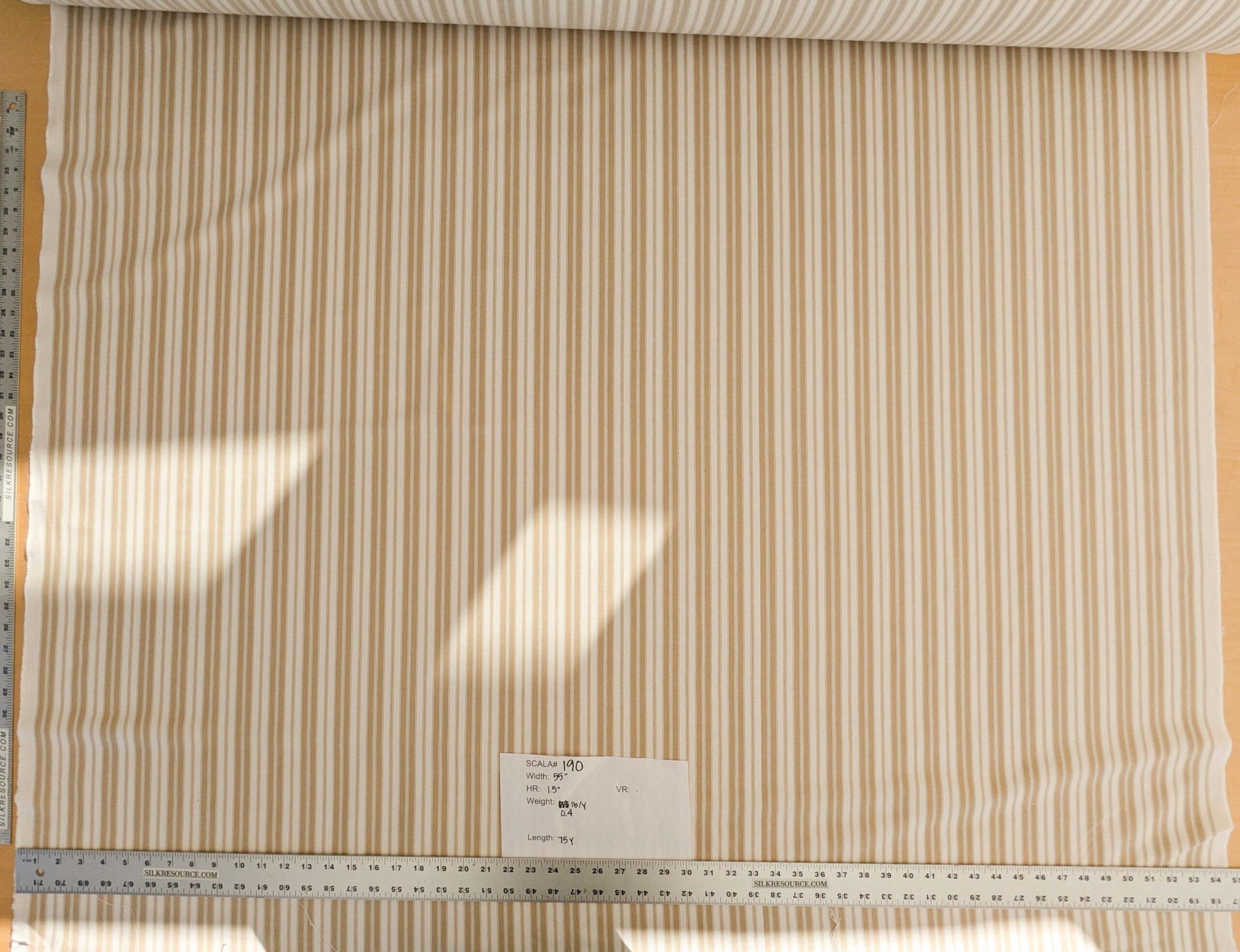 by yard Scalamandre Devon Ticking Stripe Camel Light Brown Cream White Cotton MSRP USD116/y