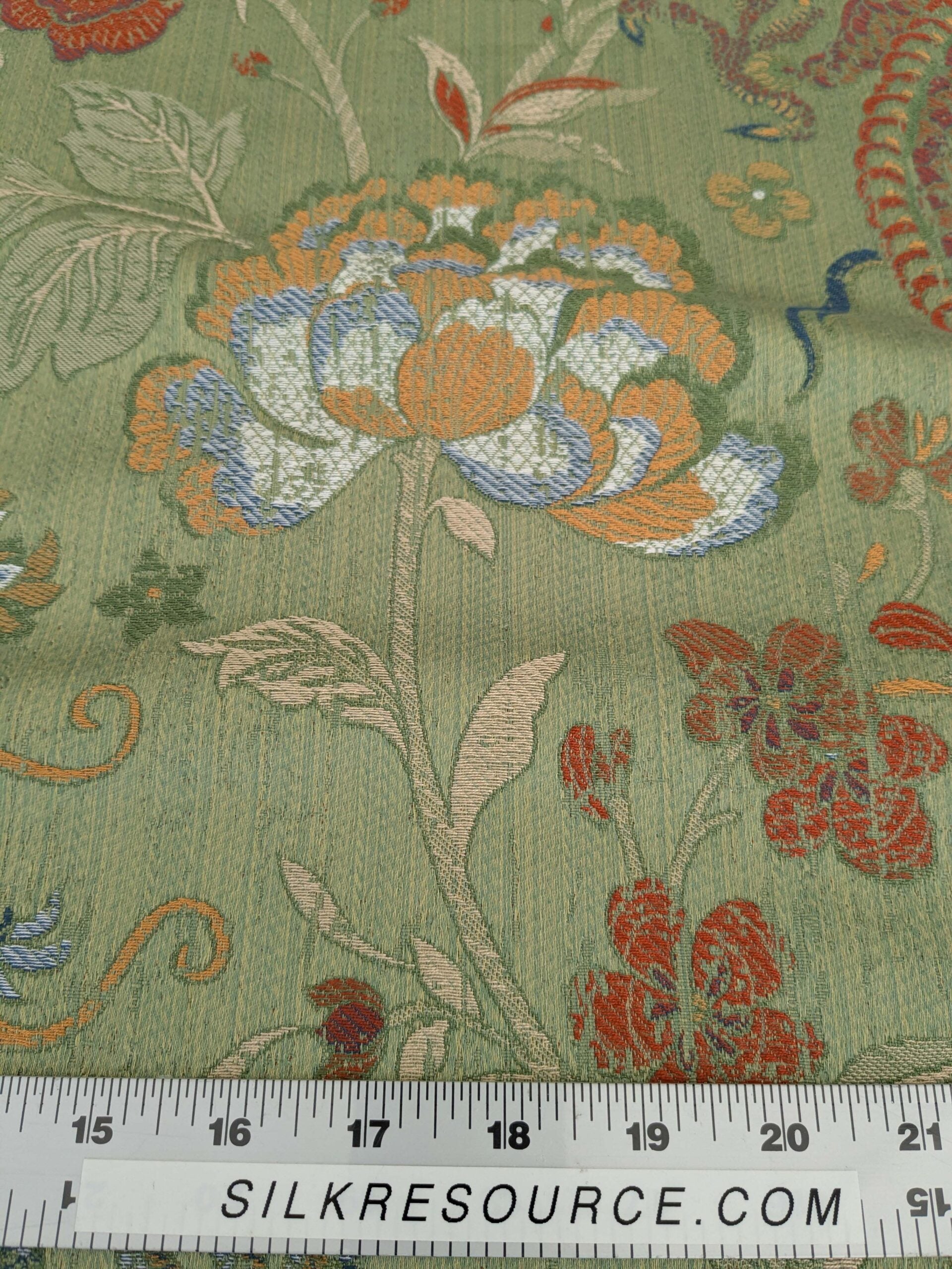 By yard Scalamandre Dragon Tablea Spring Multi Lampas Chinoserie Green