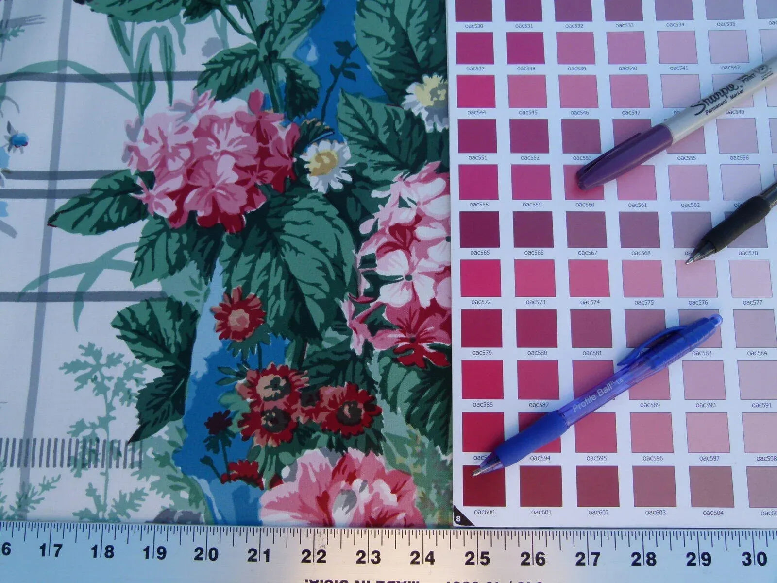 By Yard Scalamandre Eugenie Multi On Blue Chintz Tromp D’oeil Satin Sache Rose Garland MSRP USD 288/Yd