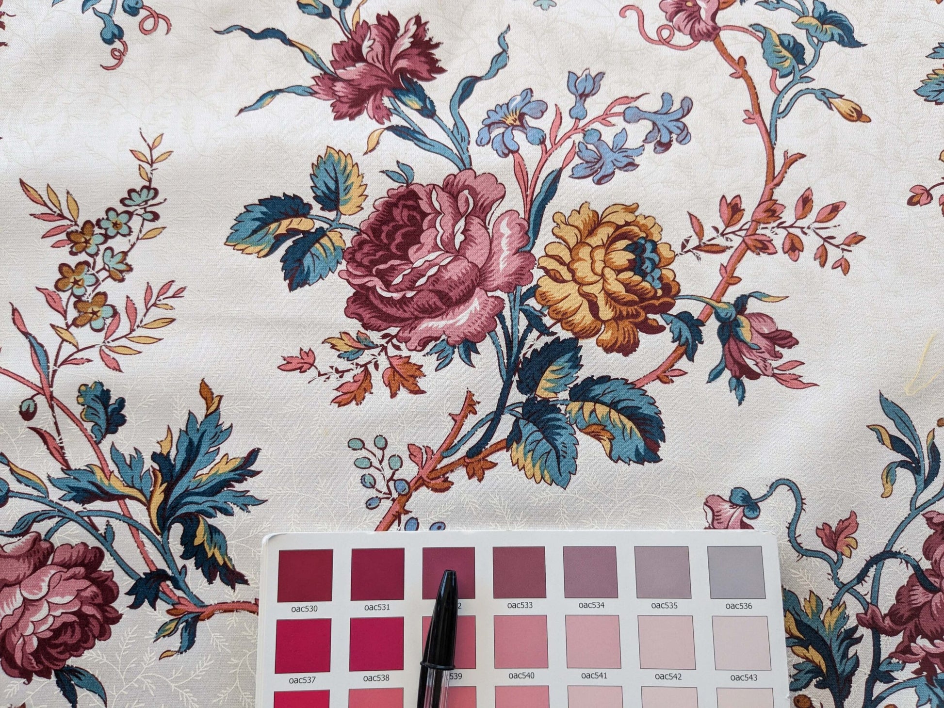 Color, repeat, fiber content, applications & retail price: please see the printout in photo.