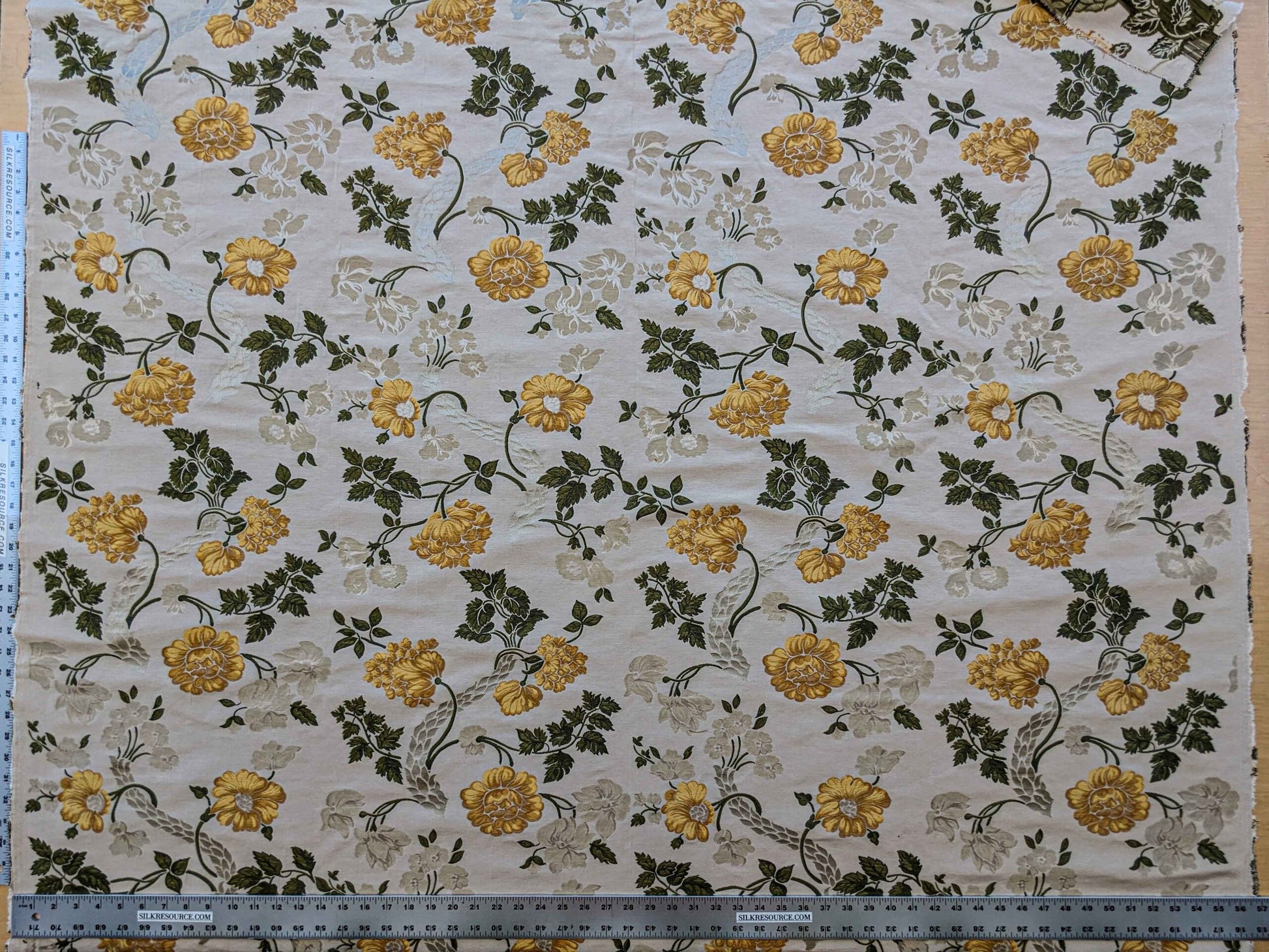 https://silkresource.com/store/product/by-yard-scalamandre-fil-coupe-bright-yellow-golden-sunflower-daisy-green-vine-on-warm-beige-silky/