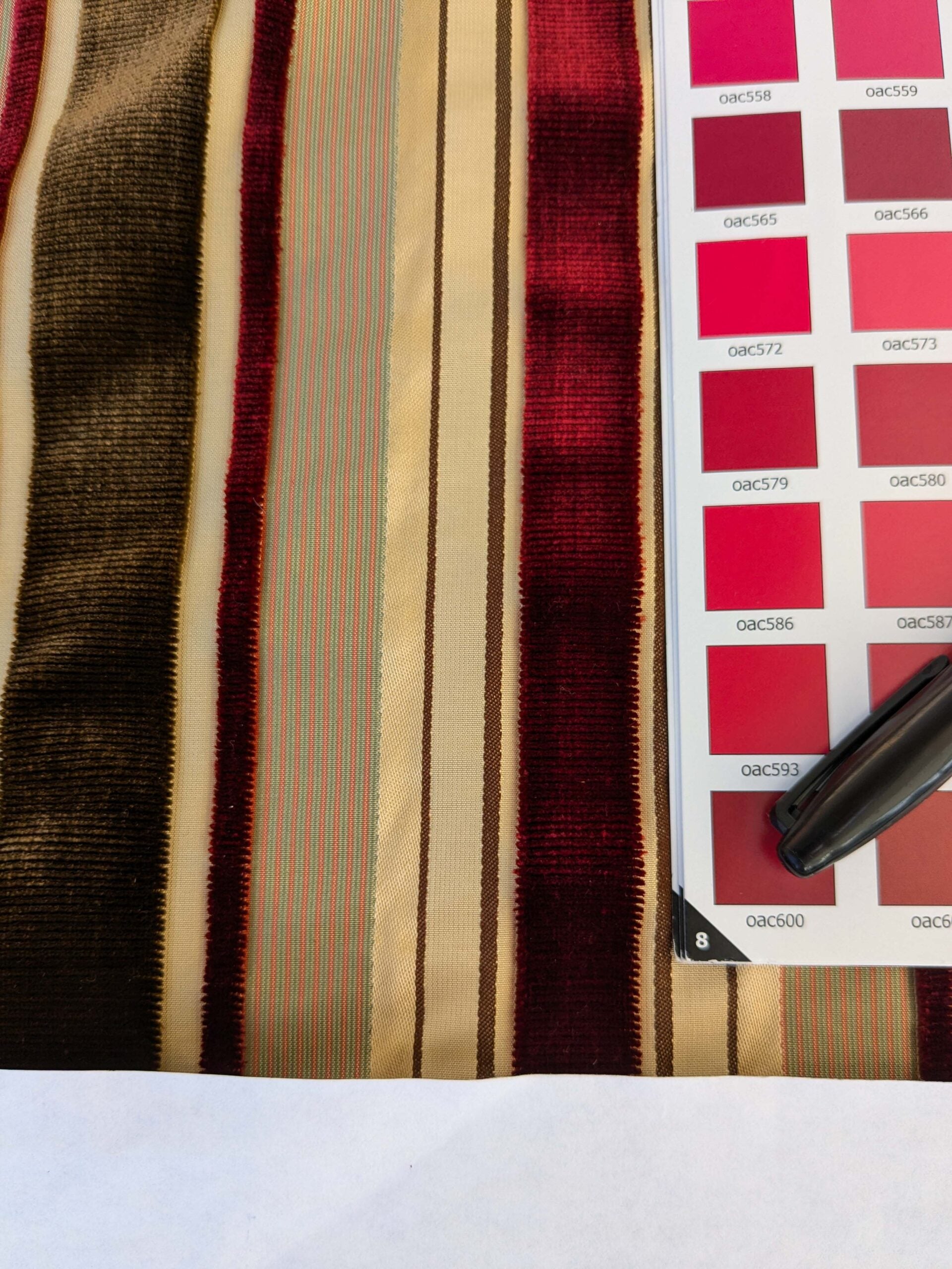 by yard Scalamandre Giacomo Silk Velvet Stripe Burgundy Brown Decadent Silk Pile MSRP USD500/y