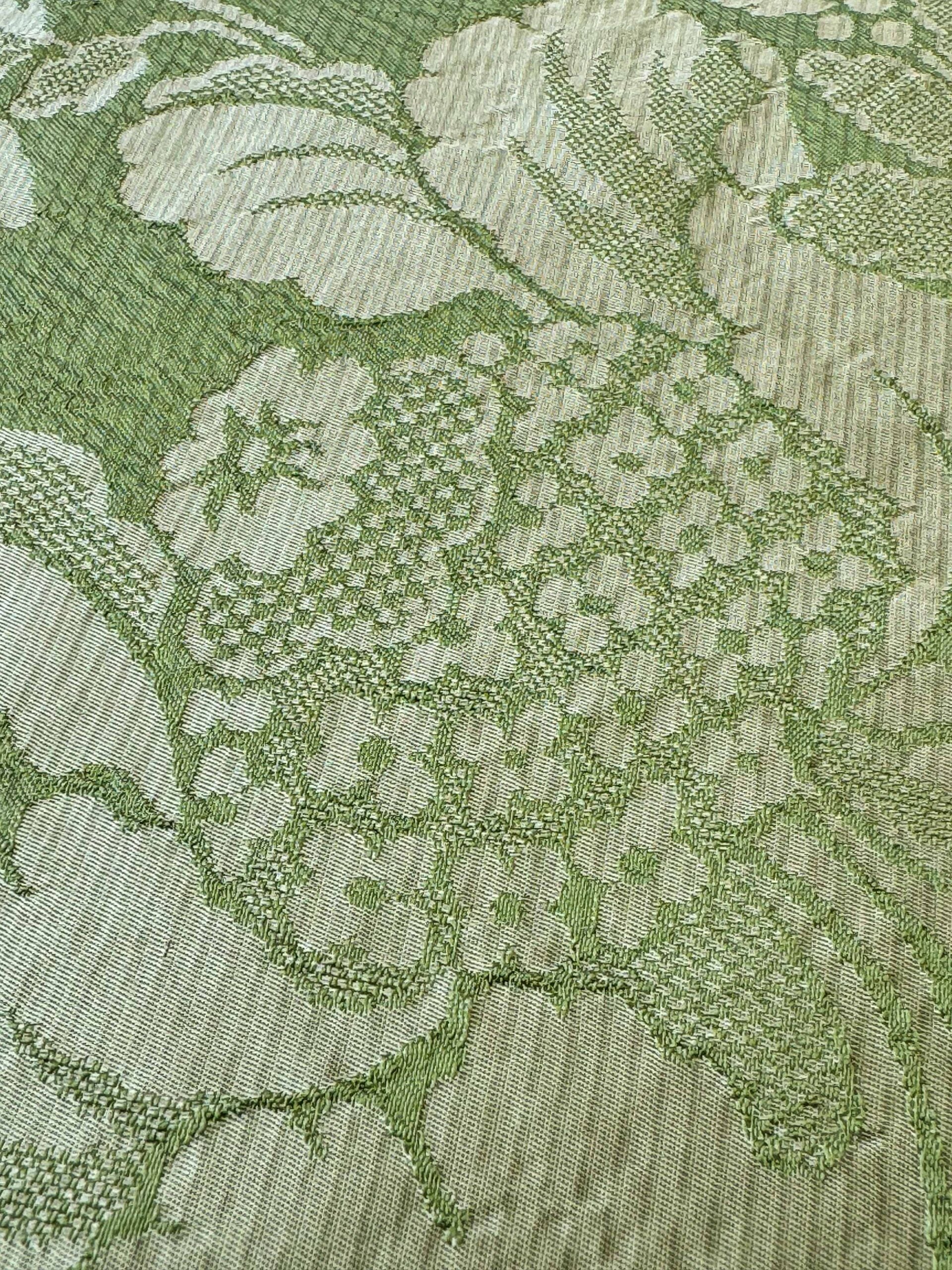 Classic Renaissance silk damask, in delicate green. The gaufre texture is a signature of historical design. Such silk damask retails for $600+/yard.