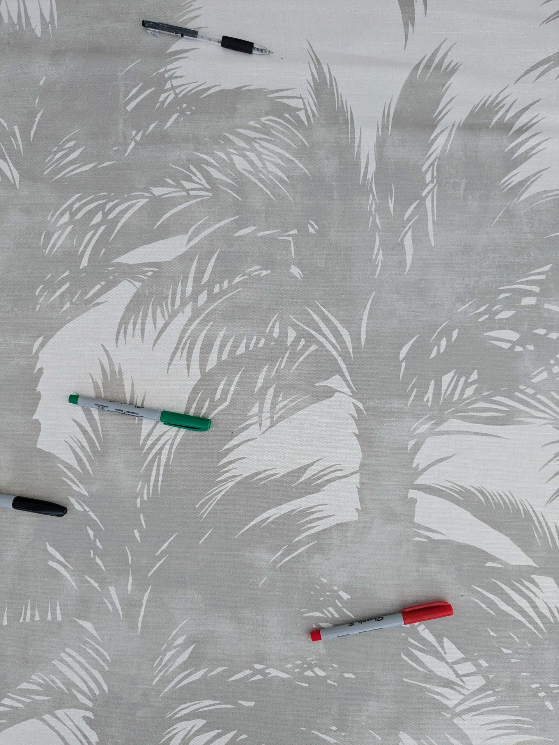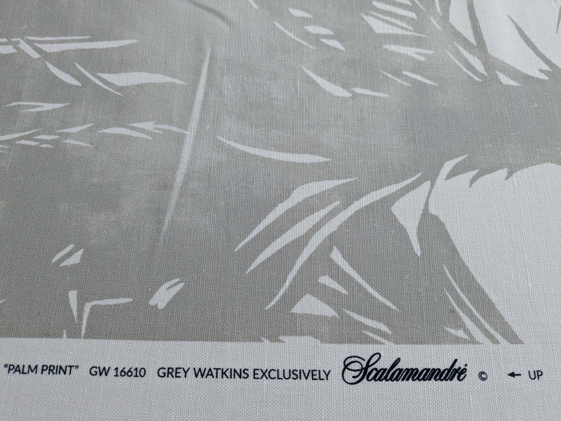 By yard Scalamandre Grey Watkins Palm Print Grey White Huge Leaf Botanical Foliage Tropical Linen Cotton MSRP USD 338/y