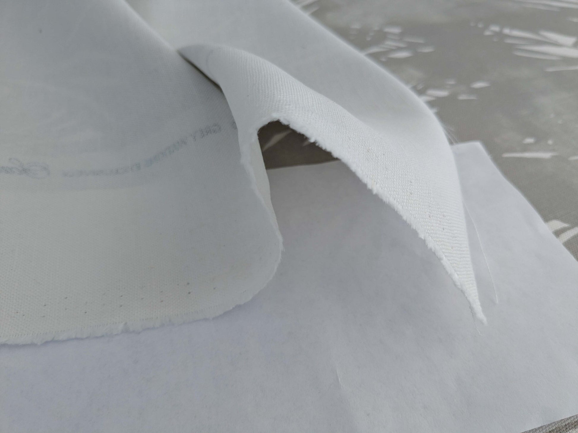Grey Watkins printed it on heavy silk and linen blend. You will be surprised of its weight.