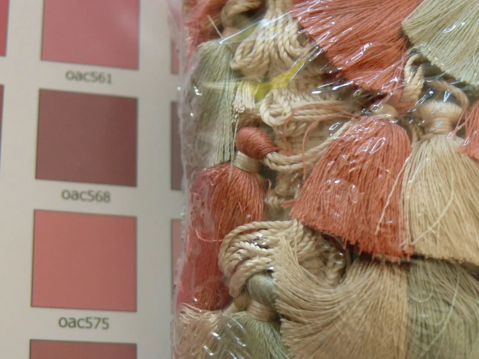 Most luxurious hand-made tassel fringe in 100% silk! Incredibly soft and saturated. It takes skilled artisan hours to craft a few yards.