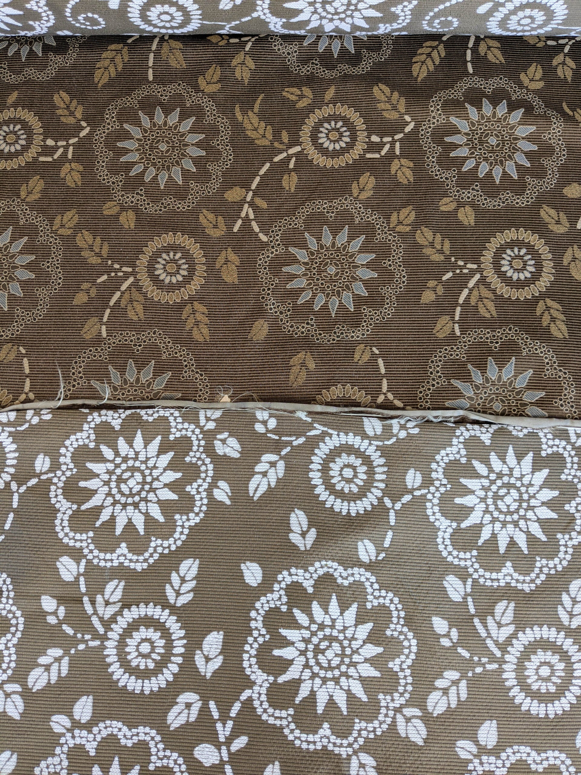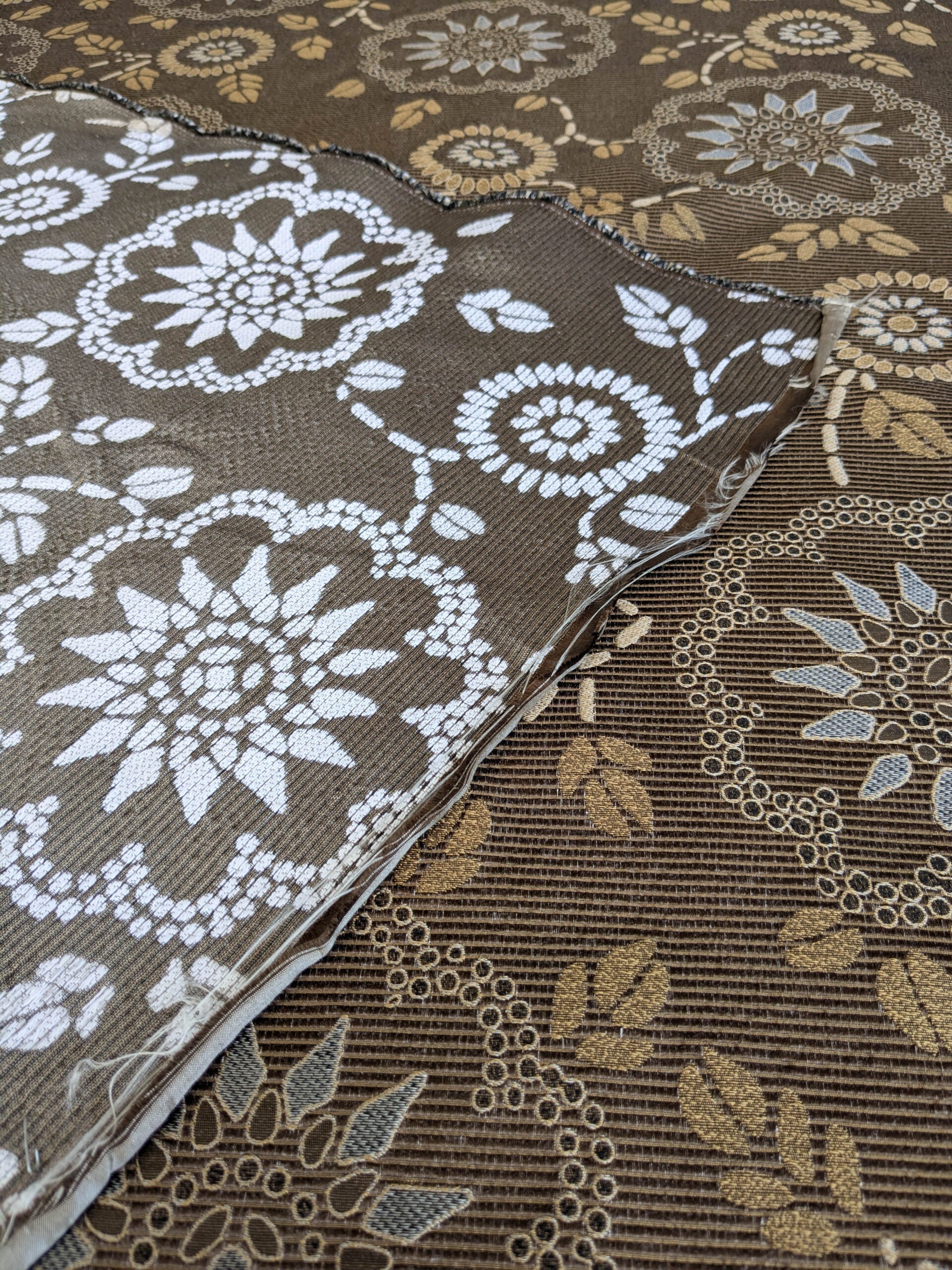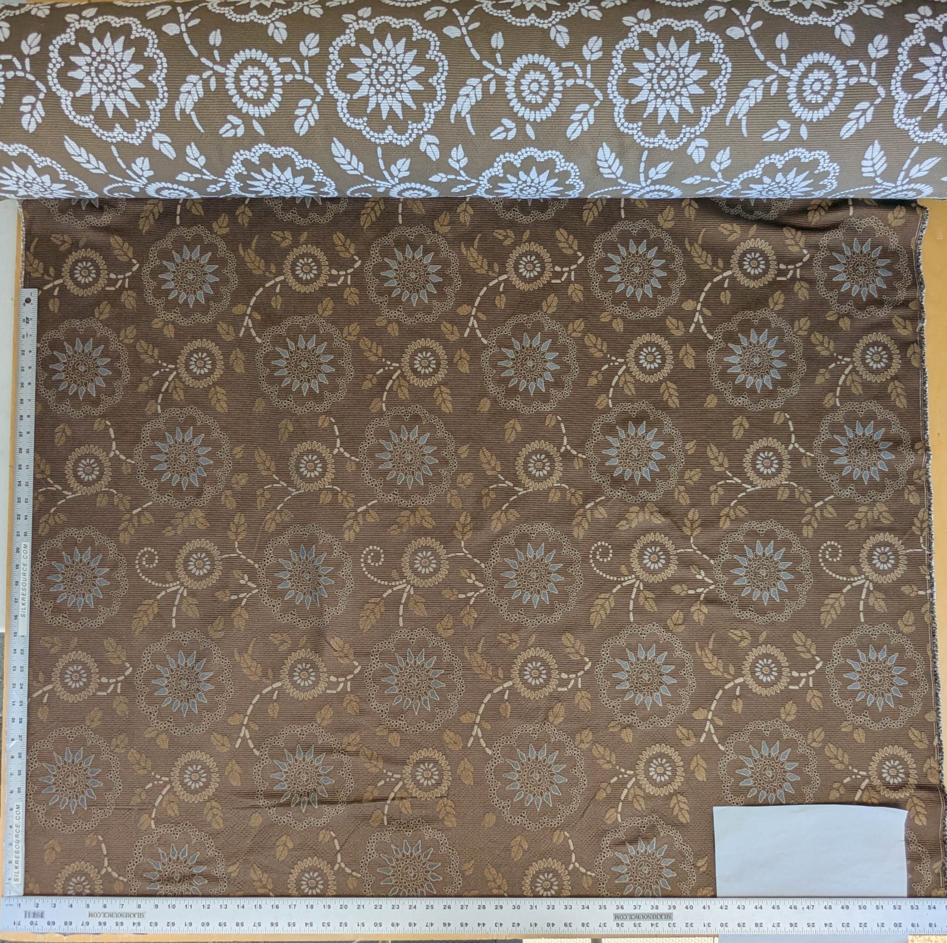 By Yard Scalamandre Kasumi Chocolate Brown Silk Lampas Kimono Daisy Flower Art Deco MSRP USD 276/Y