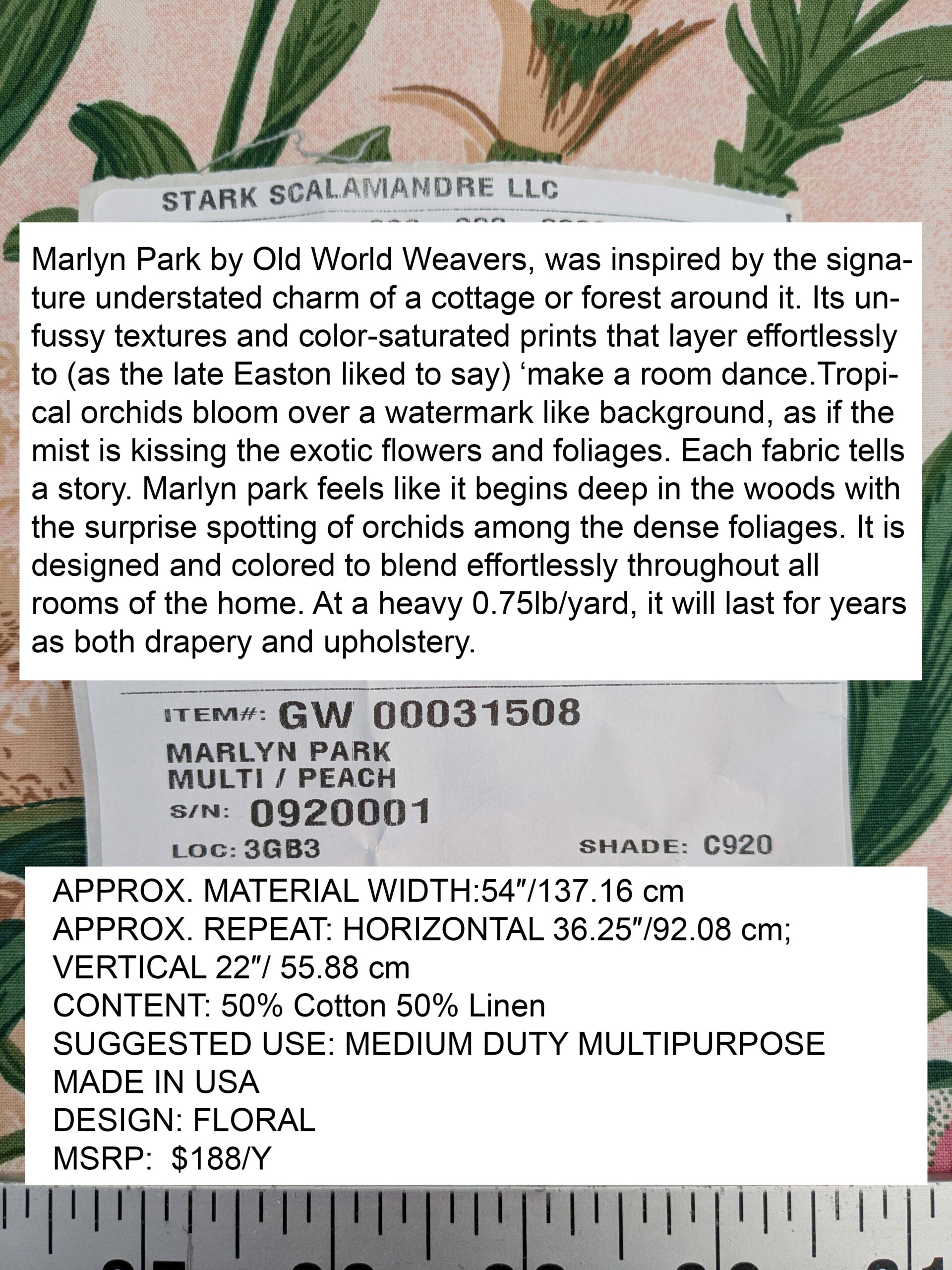 By yard Scalamandre Marlyn Park Peach Cotton Floral MSRP USD 188/Y