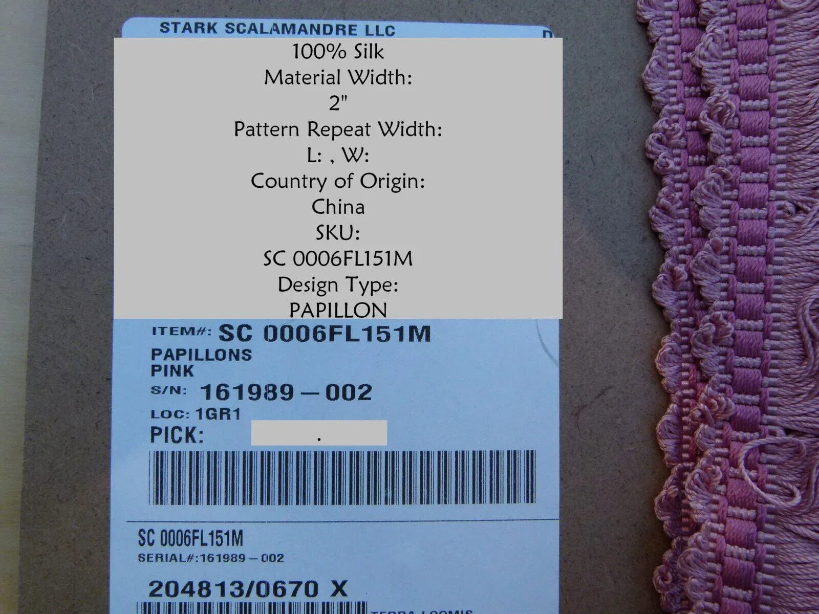 By Yard Scalamandre Papillons Pink Silk Loop Fringe MSRP USD 98/Y