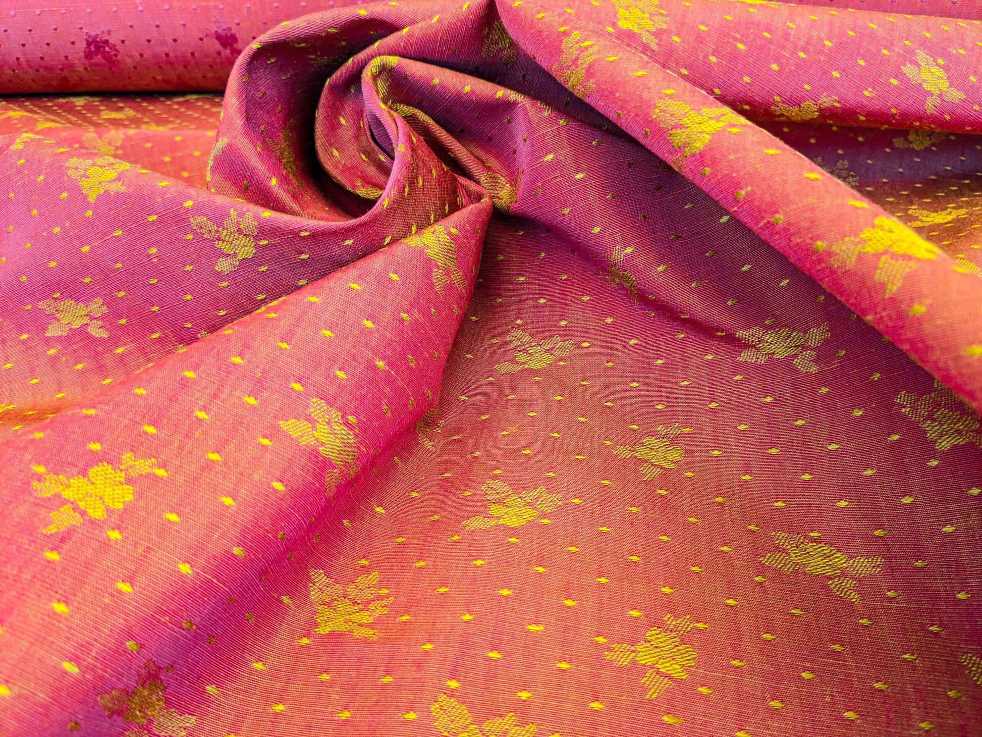 Weight: medium heavy weight silk damask. About 0.5lb/yard. Soft, yet durable enough for upholstery purpose