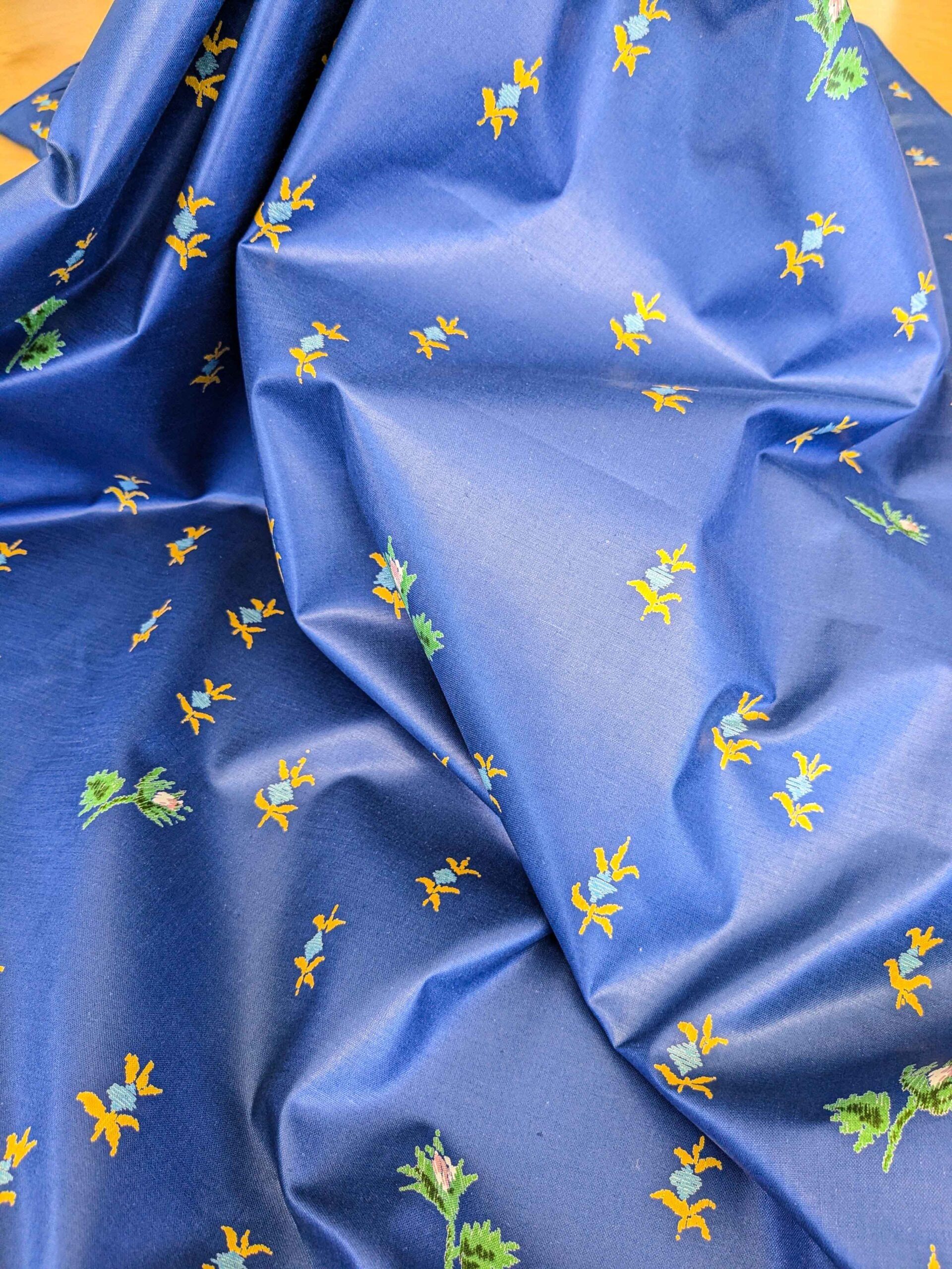 by yard Scalamandre Small Scale Yellow on Blue Botanical Floral Classy