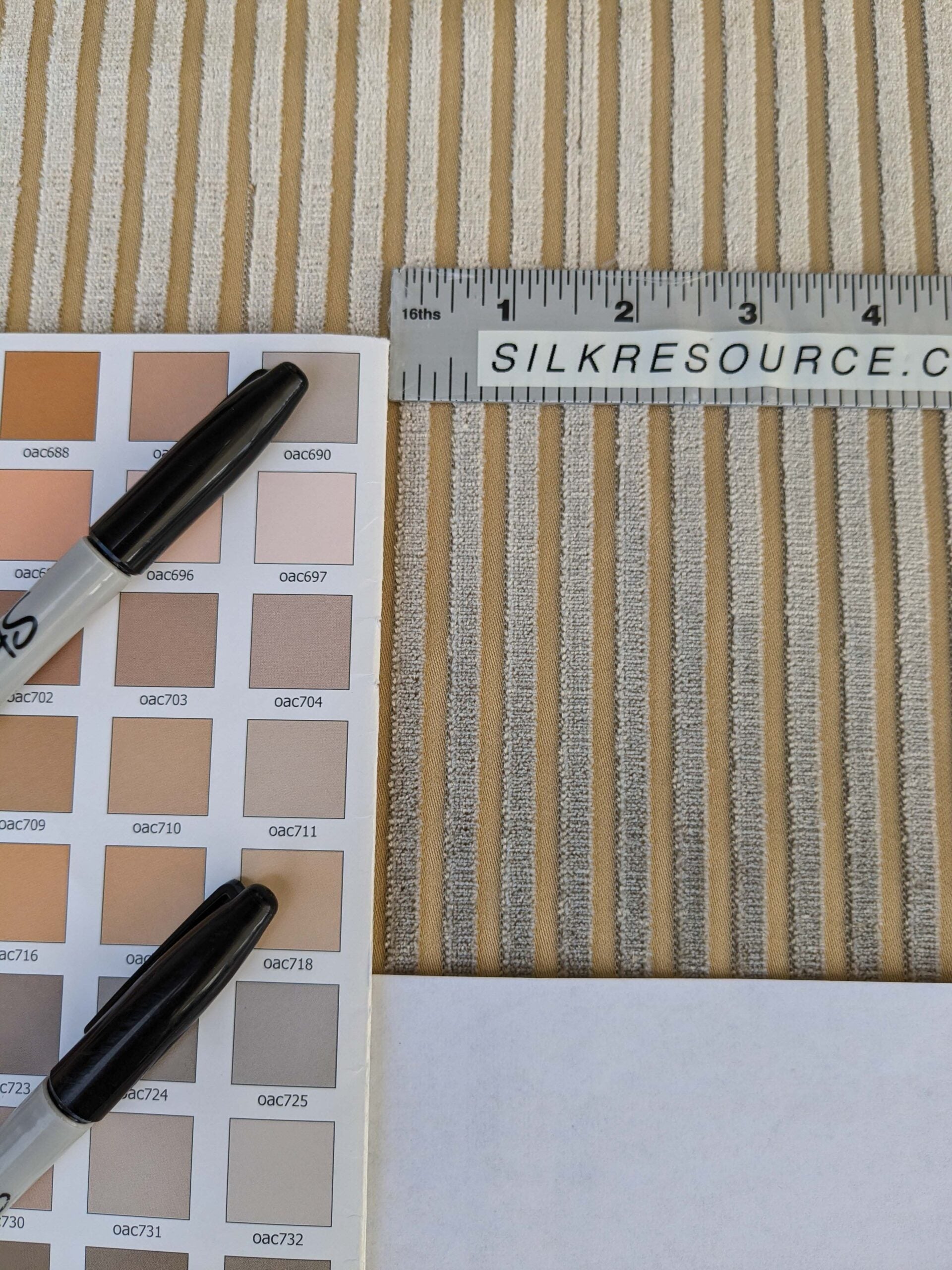 | MSRP $478 Wdith: 55″/139.70 cm Approx. repeat horizontal: 375″/0.95 cm Content: 100% silk pile Suggested use: Medium duty upholstery Made in: India Design: Stripe Weight: Heavy! 1.4lb/yard |