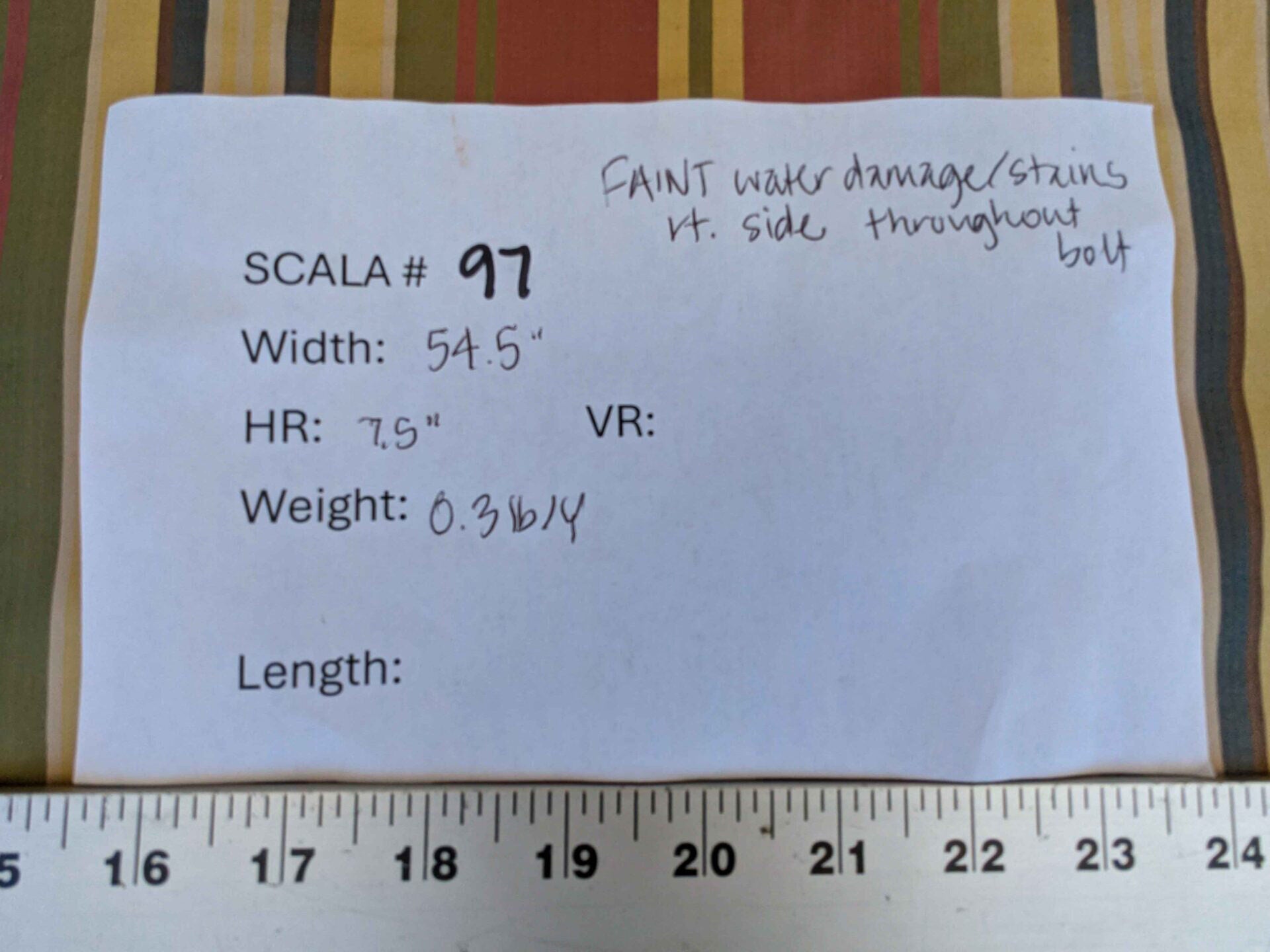 PLEASE NOTE: There are very faint water marks/damage along one side of the bolt, throughout the entire length of the fabric.