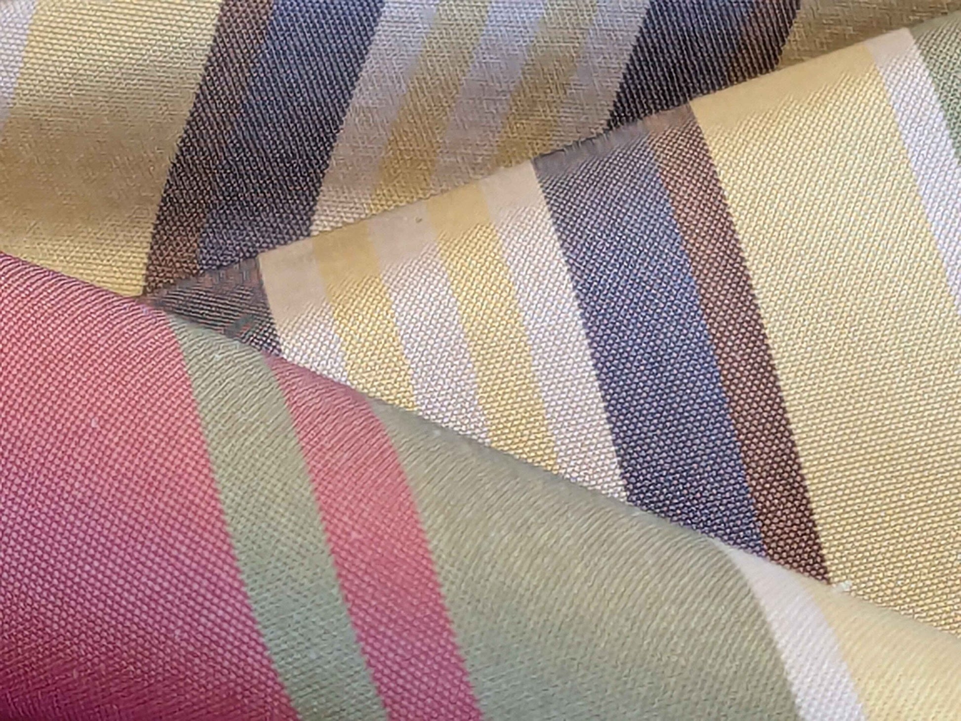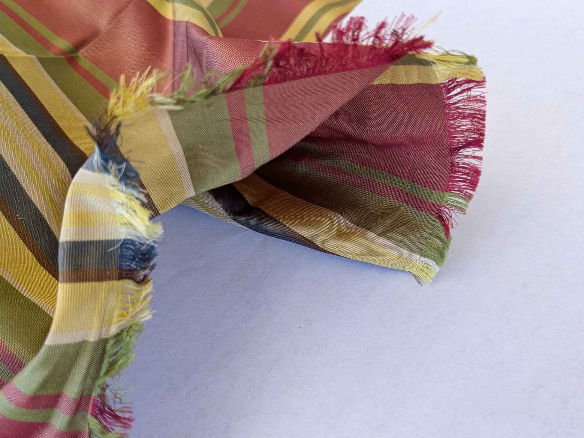 by yard Scalamandre Silk Taffeta Stripe Red Green Yellow White Defect.