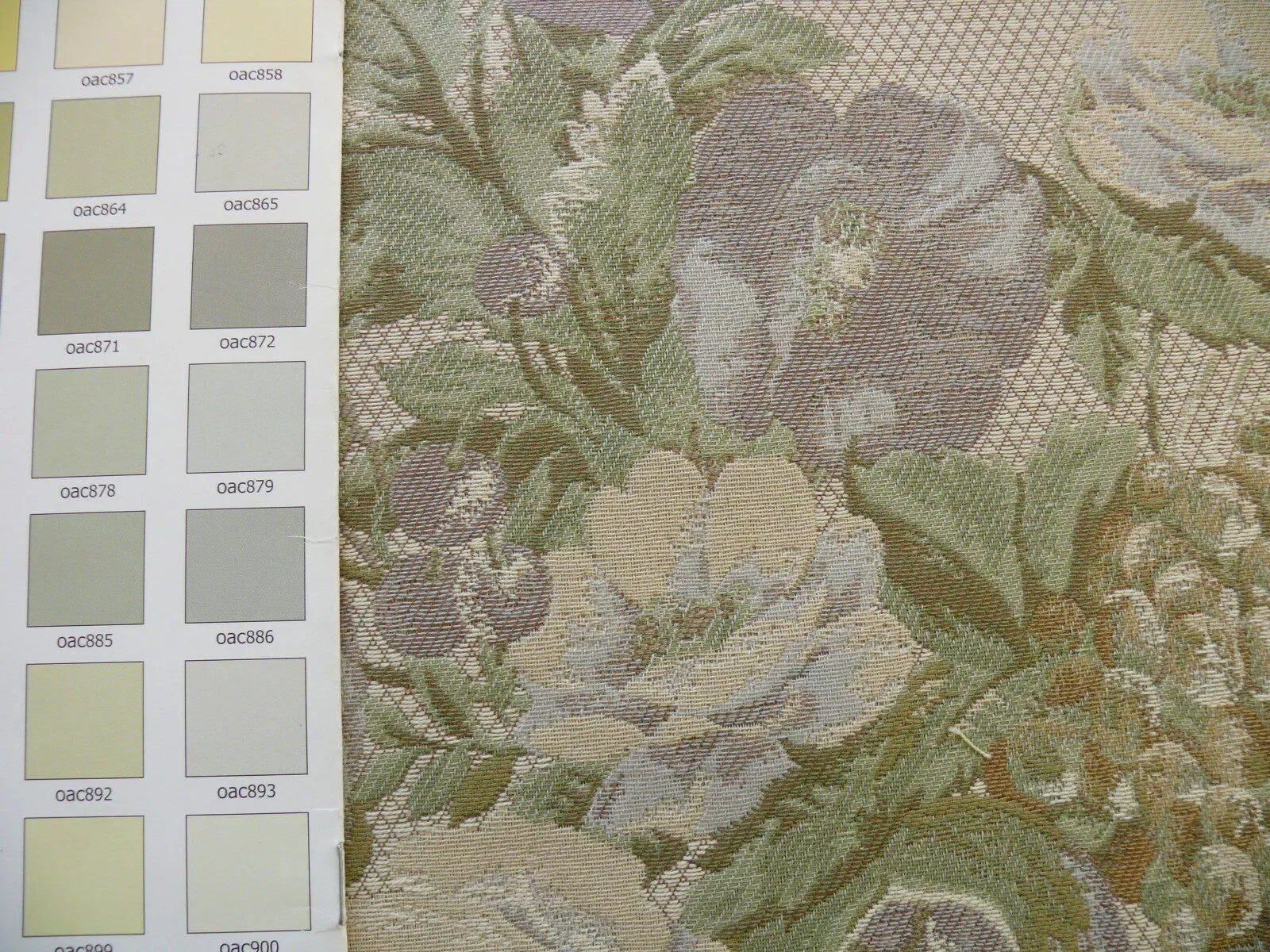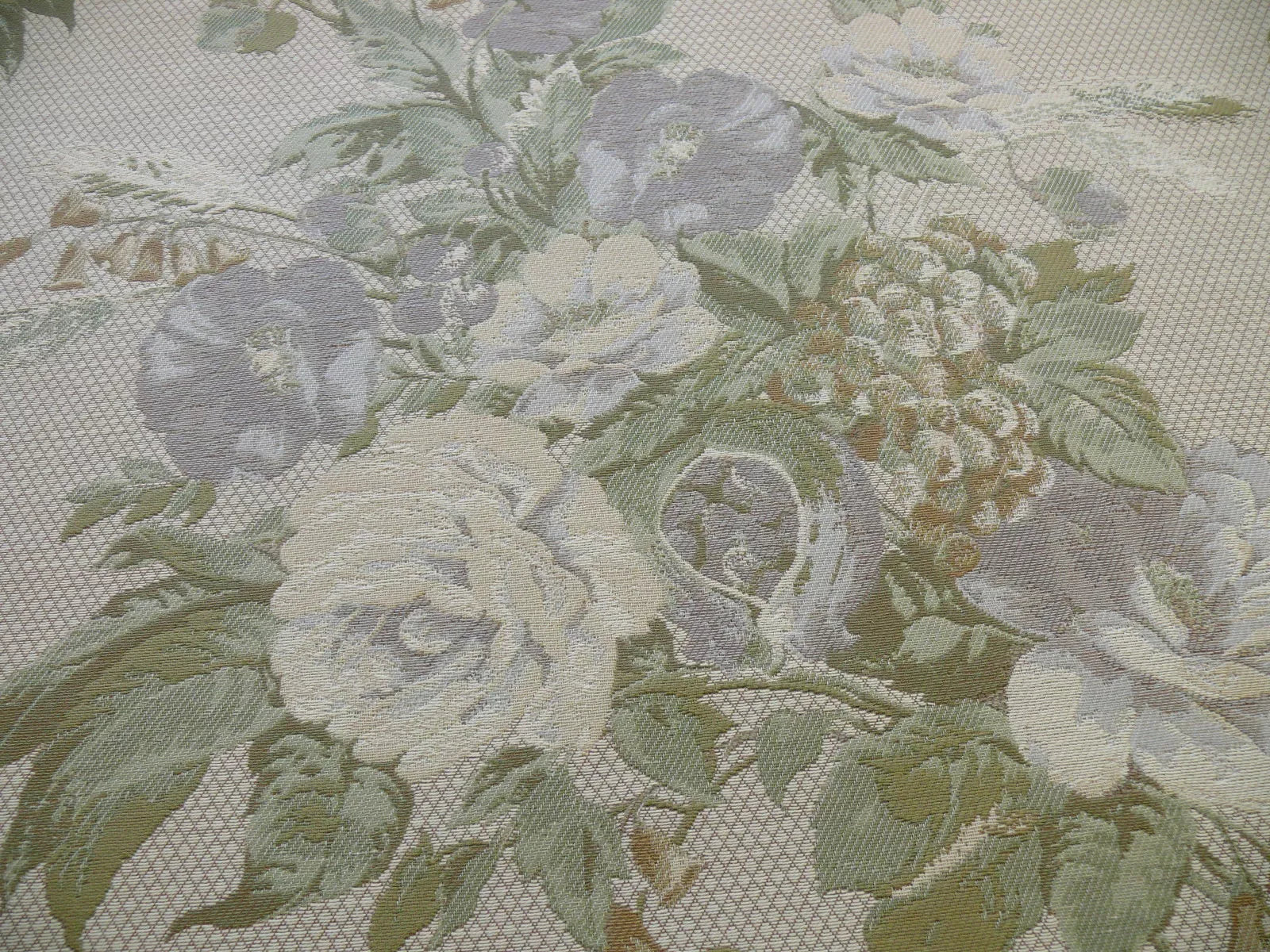 Beautifully detailed wool and cotton lampas, with soft subtle colors. You can smell the fragrance of the rose bouquet.