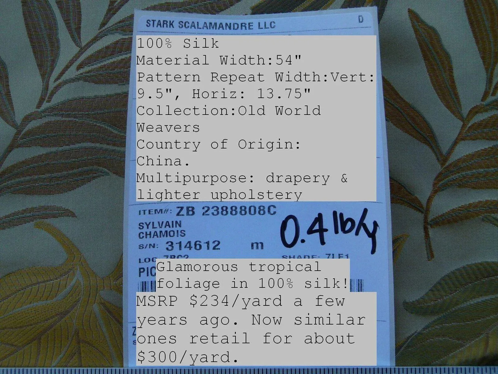 By Yard Scalamandre Sylvain Chamois Silk Damask Tropical Foliage Monstera MSRP USD300+/Y