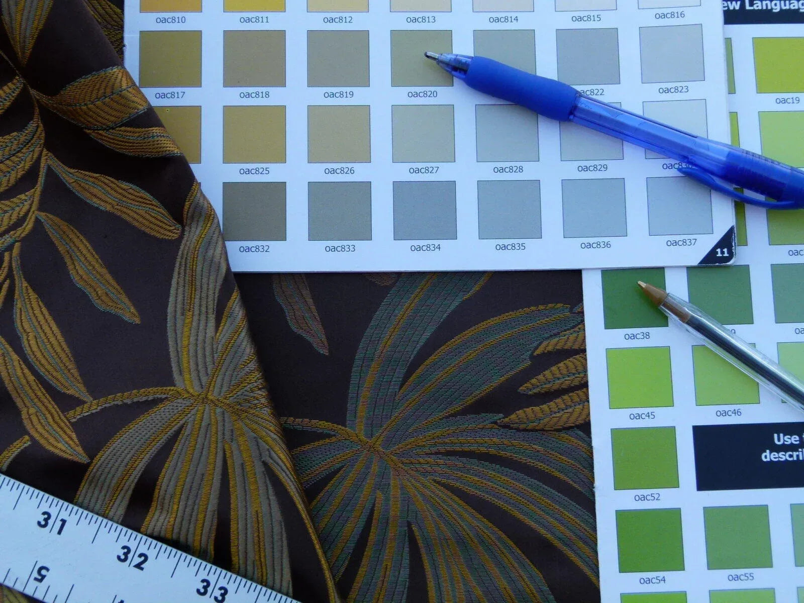 By Yard Scalamandre Sylvain Espresso Dark Brown Silk Damask Tropical Foliage Monstera MSRP USD 300+/Y