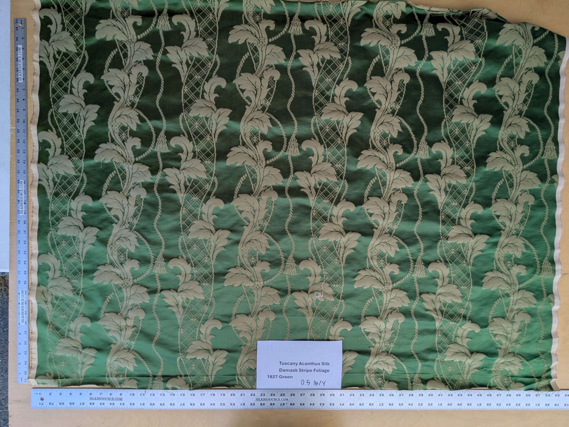 By yard Tuscany Acanthus Silk Damask Stripe Emerald Foliage Green