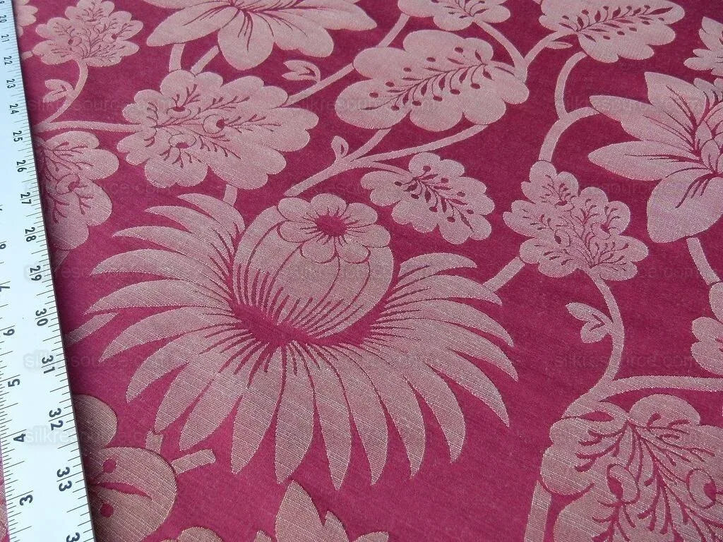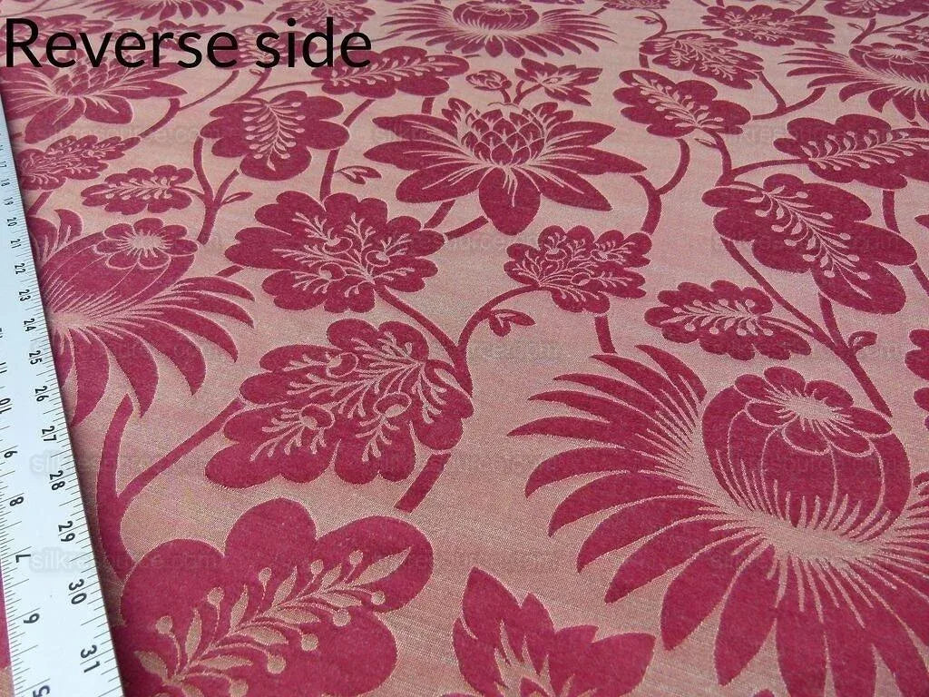 With a strong sense of motion, the blossoms and foliage and vine dance in a graceful pattern. High quality fiber gives it substantial weight and silky sheen. Fully reversible. Suitable for drapery and upholstery.