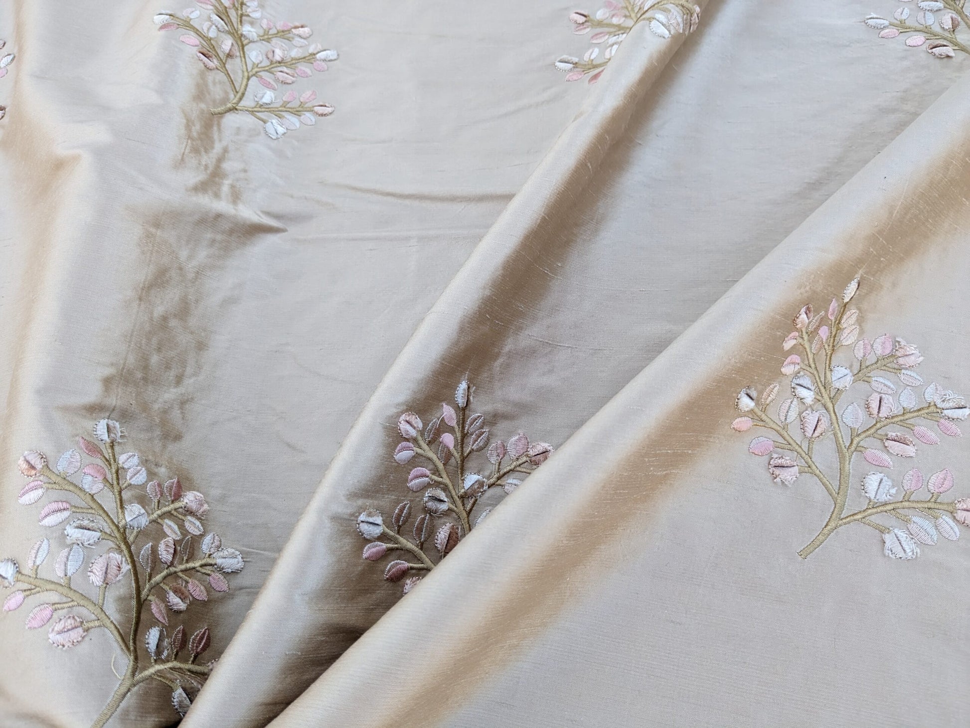 By Yd Kravet Silk Dupioni Embroidery Beige Pink Sprig MSRP USD 100+/Y
