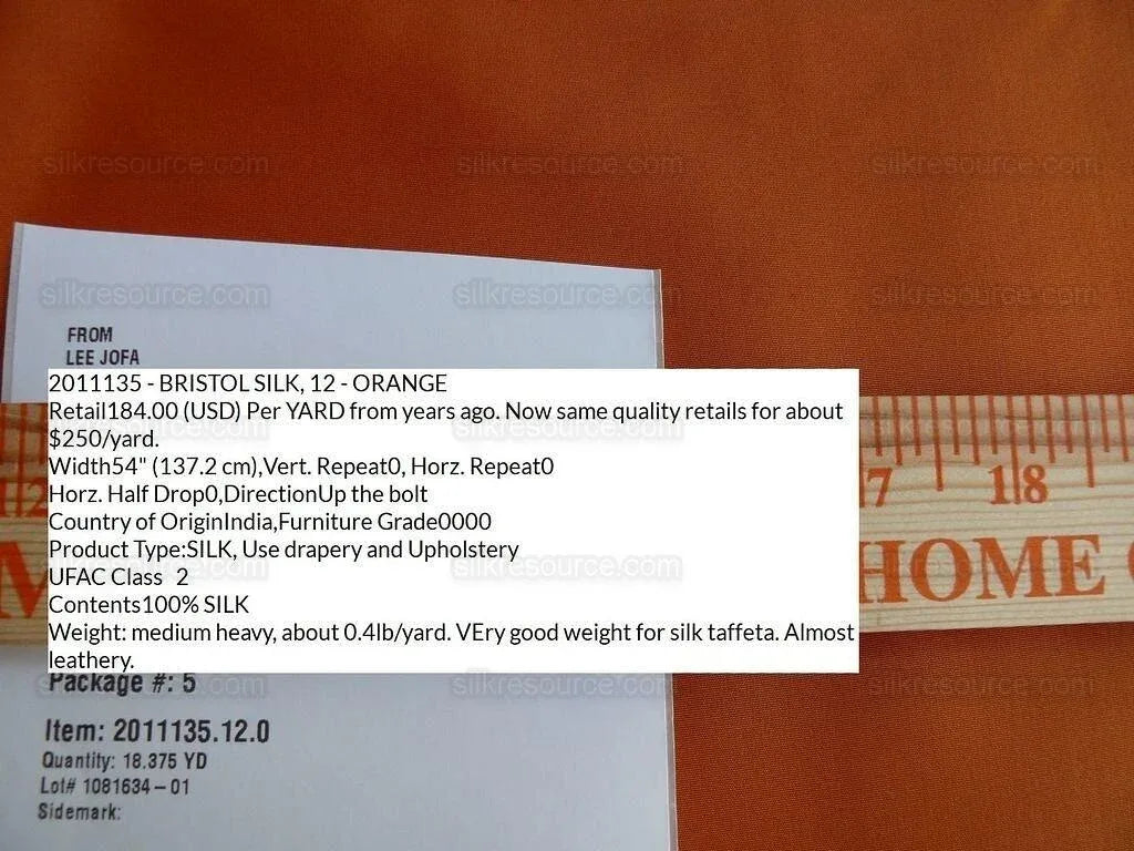 By yard Lee Jofa Bristol Silk Orange Heavy Taffeta MSRP USD 184/Y