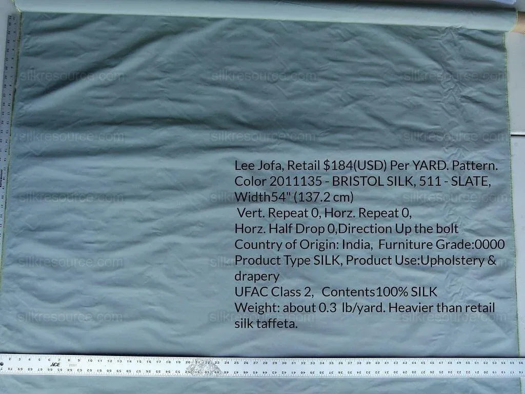 By yard Lee Jofa Bristol Silk Slate Blue 100% Silk MSRP USD 184/y