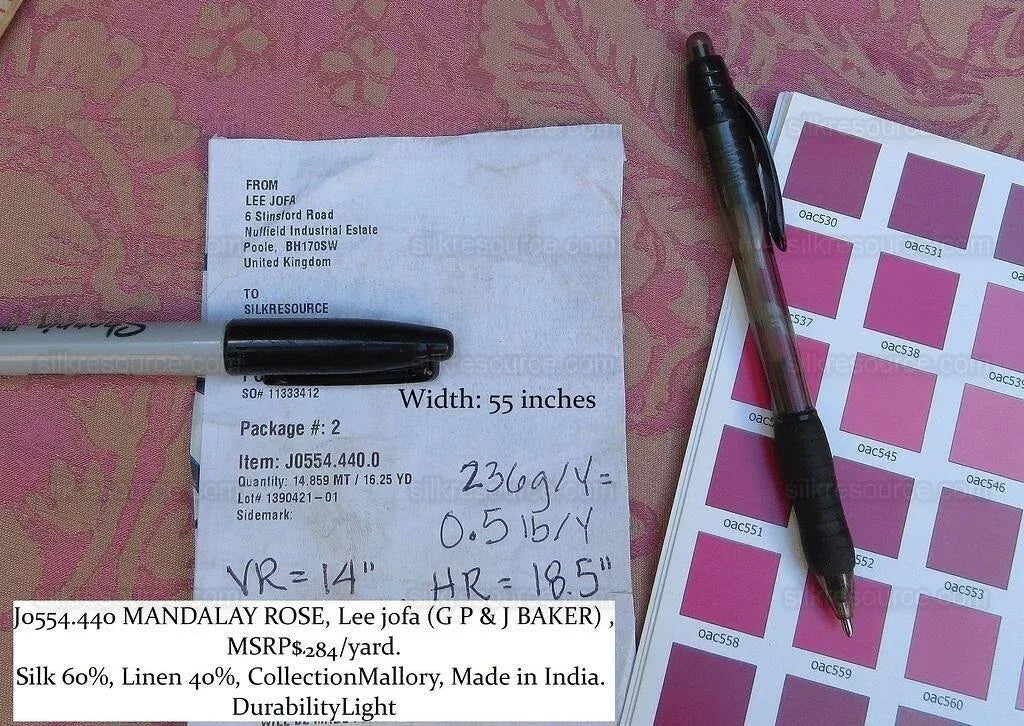 By Yd Lee Jofa Mandalay In Rose Red Pink Silk Damask MSRP USD 284/Y