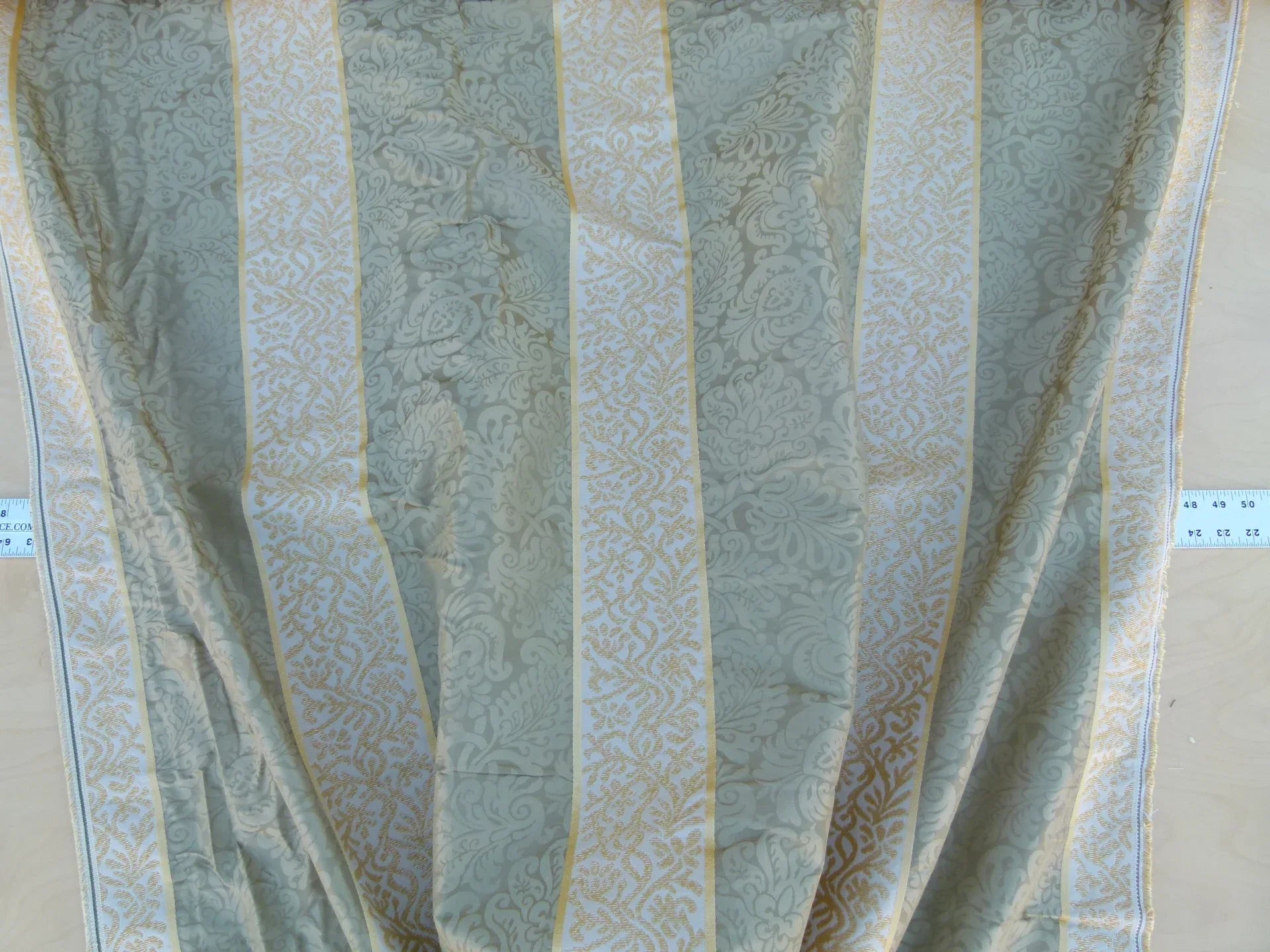 By Yd Lee Jofa Romanelli Stripe Oyster Grey Olive Green Gold Italy Linen MSRP USD270/Y