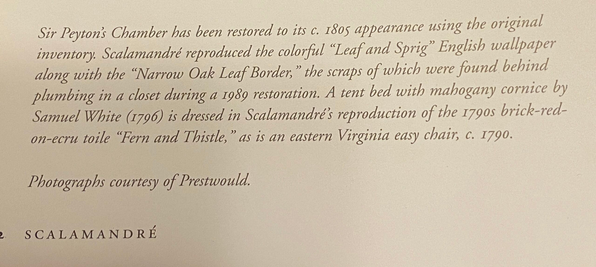 Grey Watkins reissued the famous historical toile “Fern and Thistle” circa 1790 with meticulous details.