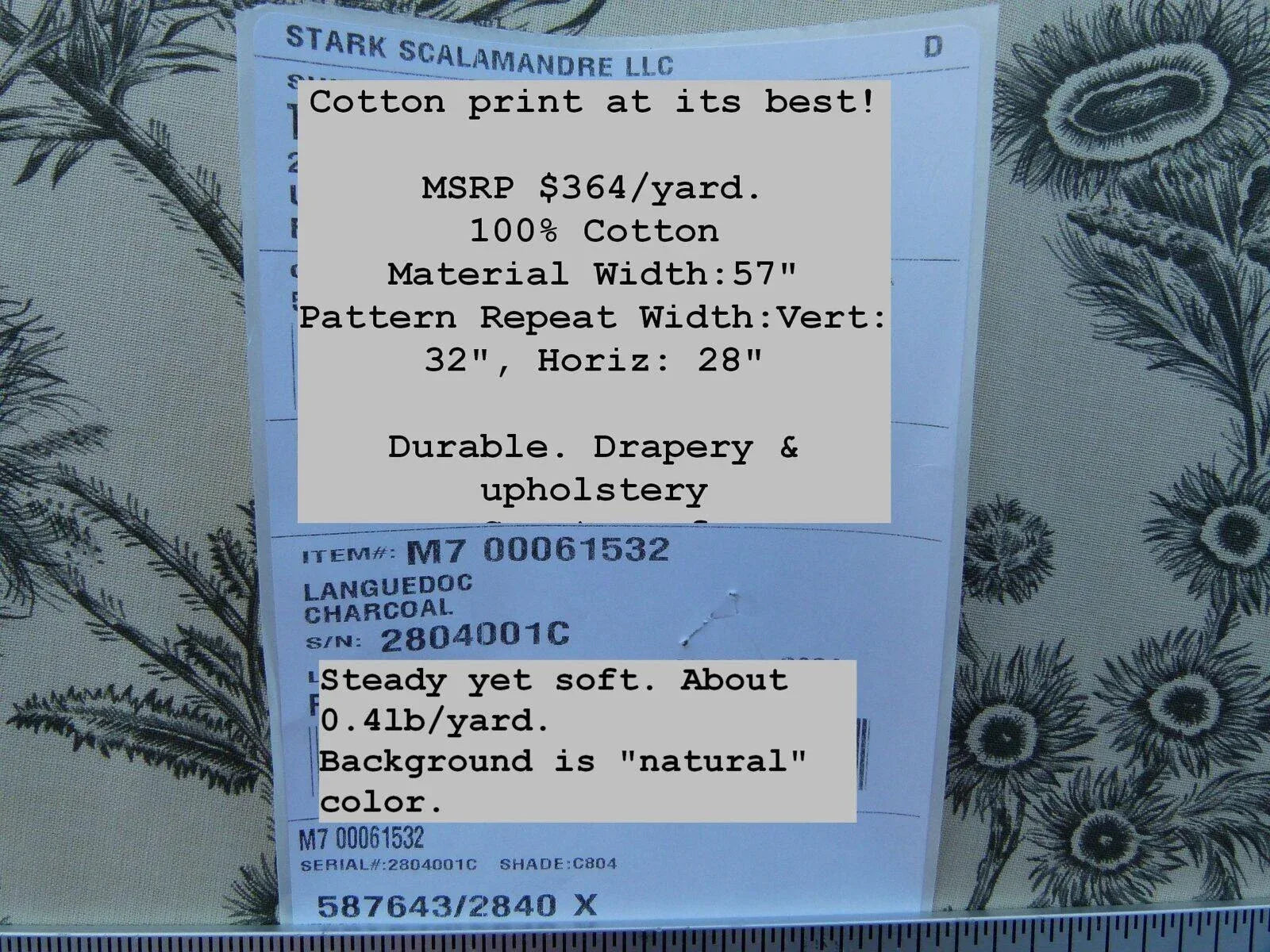 Fiber, repeat, width, weight, country of origin, retail price/yard: