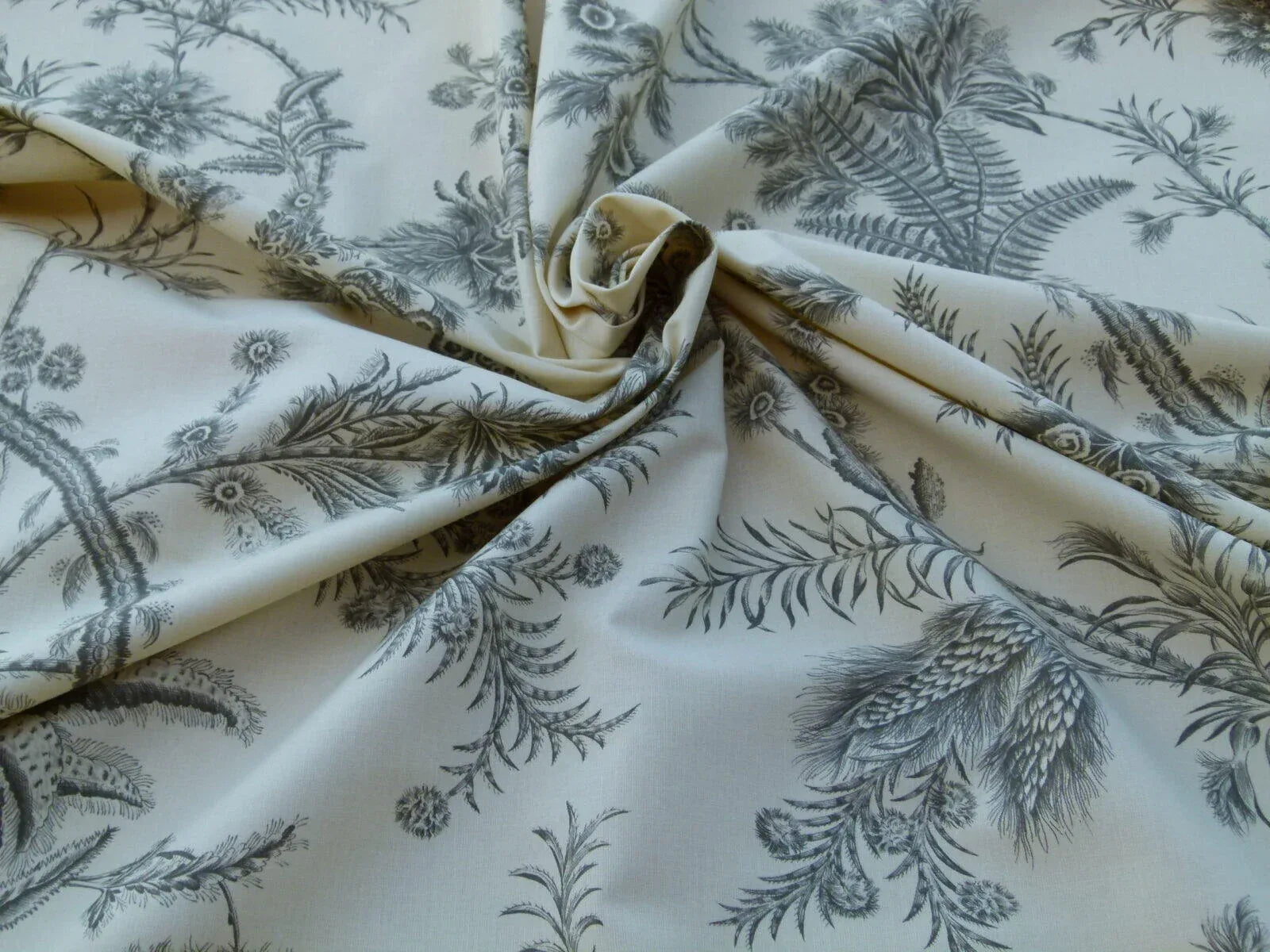 By Yd Scalamandre Grey Watkins Languedoc Charcoal Black White Botanic Fern and Thistle Southern France Toile Circa 1790 MSRP USD 364/y