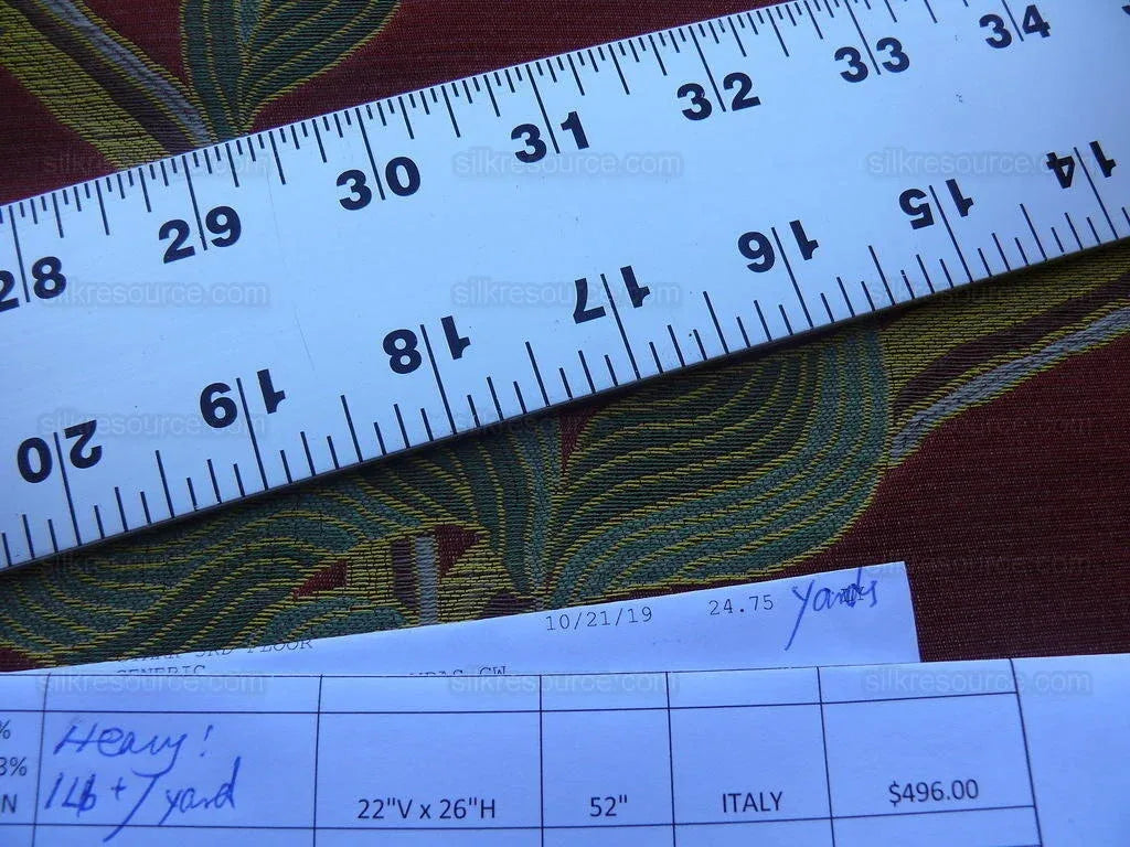 ITEM DESCRIPTION: SKU: MO 00041497 NAME: CASERTA LAMPAS GW RED FLOWER LAMPAS MSRP$496/Y CONTENT: 11% VISCOSE; 15% SILK; 18% LINEN; 23% WOOL; 33% COTTON APPROX. REPEAT: Vert. 22" / Horiz. 26" APPROX WIDTH: 52" wide HEAVY: 1lb+/yard! drapery & upholstery MADE IN ITALY Designer: Scalamandre/Old World Weavers Caserta Lampas blends silk, wool, linen and viscose to achieve the impossible: durability and softness, practicality and luxury. The classic Renaissance botany icons, pomegranate for vigor and lily for purity, are rendered in an unusual robust and almost masculine silhouette: strong, large, robust and decisive. The bright yellow gold added to the branches give such vibrancy that the whole picture pops out. Caserta Lampas is a master piece that will liven up any space, traditional, transitional or modern. Silk blend lampas. Photos cannot capture its beauty... NOTE:Highly iridescent. A lampas is a traditional weaving technique wherein weft yarns “draw” on the fabric’s surface with minimal influence from the warp. These weft floats offer crisp color and subtle texture in the pattern’s finely rendered stems, leaves and blossoms. Antonella Lampas offers classic luxury and perennial style as statement drapes or light upholstery. Our price is below wholesale and even production cost! Fits the BEST antiques. The pattern's different colors really pop out from various angles. Color, repeat, fiber content, applications & retail price: please see the printout in photo. Total available: see beginning of listing. sample (3x3 inches) is offered here: