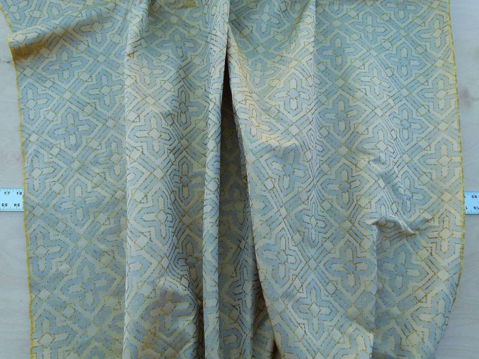 | Metallic ikat! Exquisite textures and iridescent colors achieved by yarn-dyed silk fibers. Crisp & sturdy. MSRP $264/yard. 100% Silk Material Width:54" Pattern Repeat Width: L: 6.50", W: 6.50" Collection:Grey Watkins SKU: TH 0003T001 Design Type: Ikat, about 0.4lb/yard. Medium duty multipurpose: drapery & upholstery |