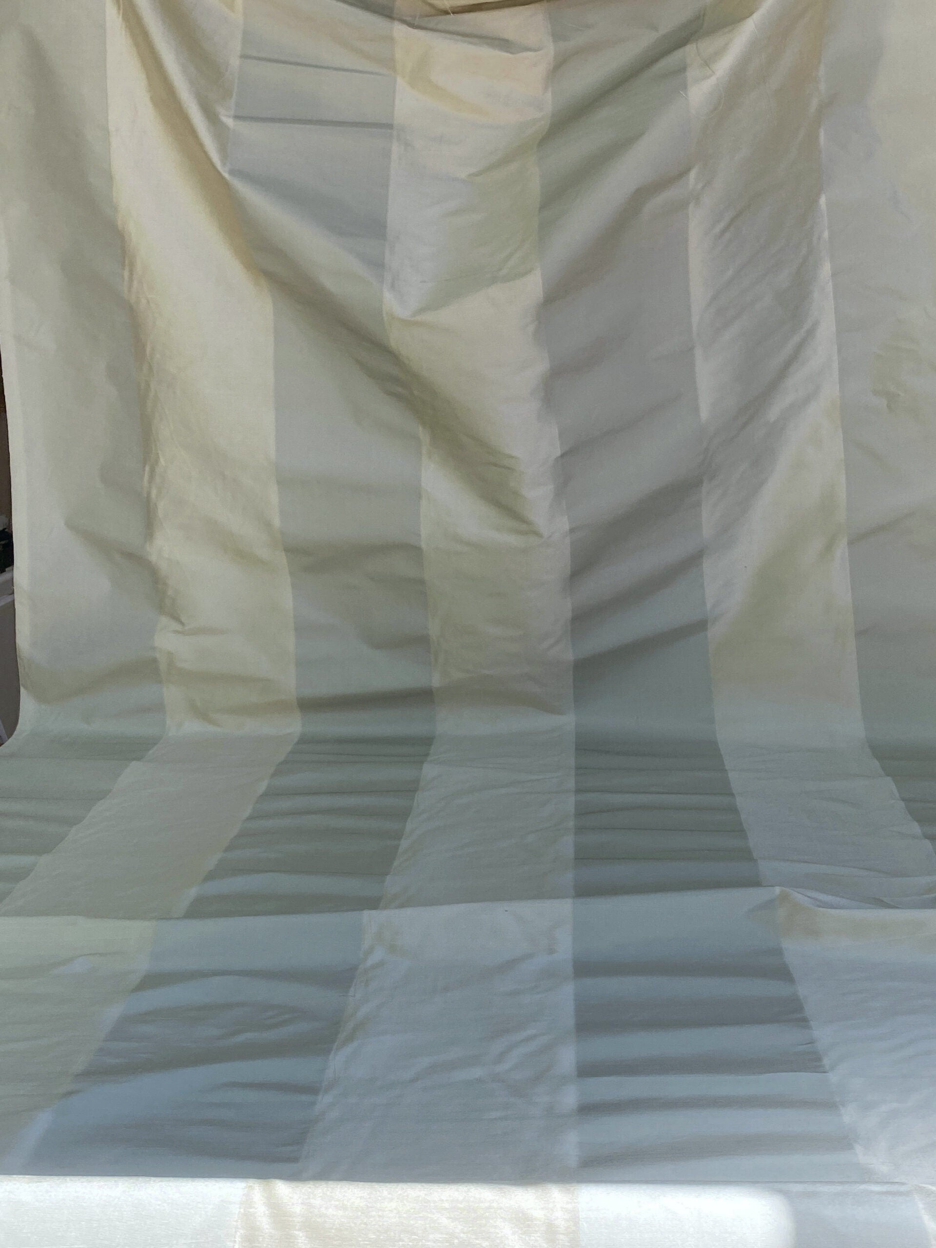 Refined silk taffeta in wide stripes. Silver, green and many hues in between! MSRP$200+/yard.