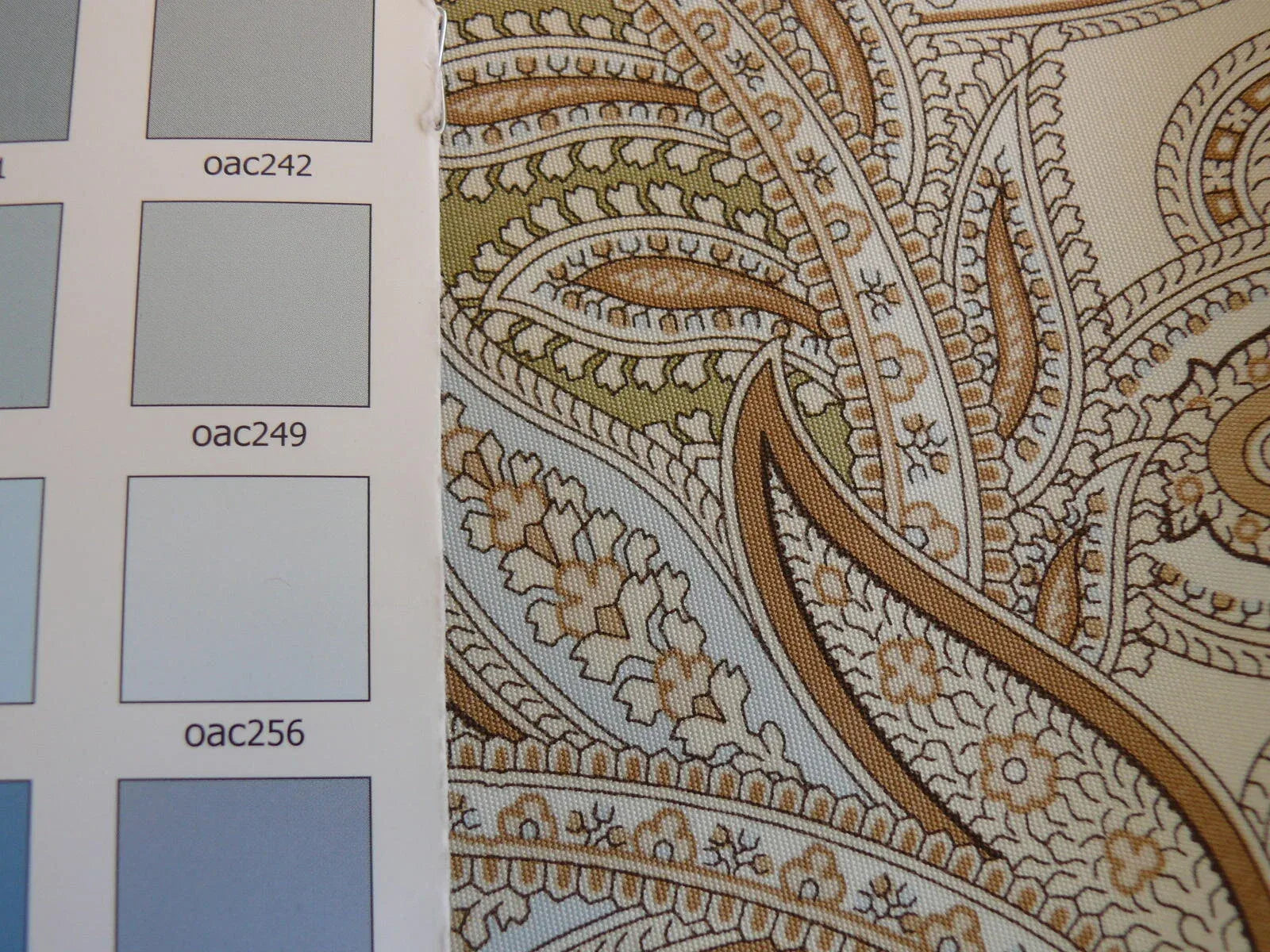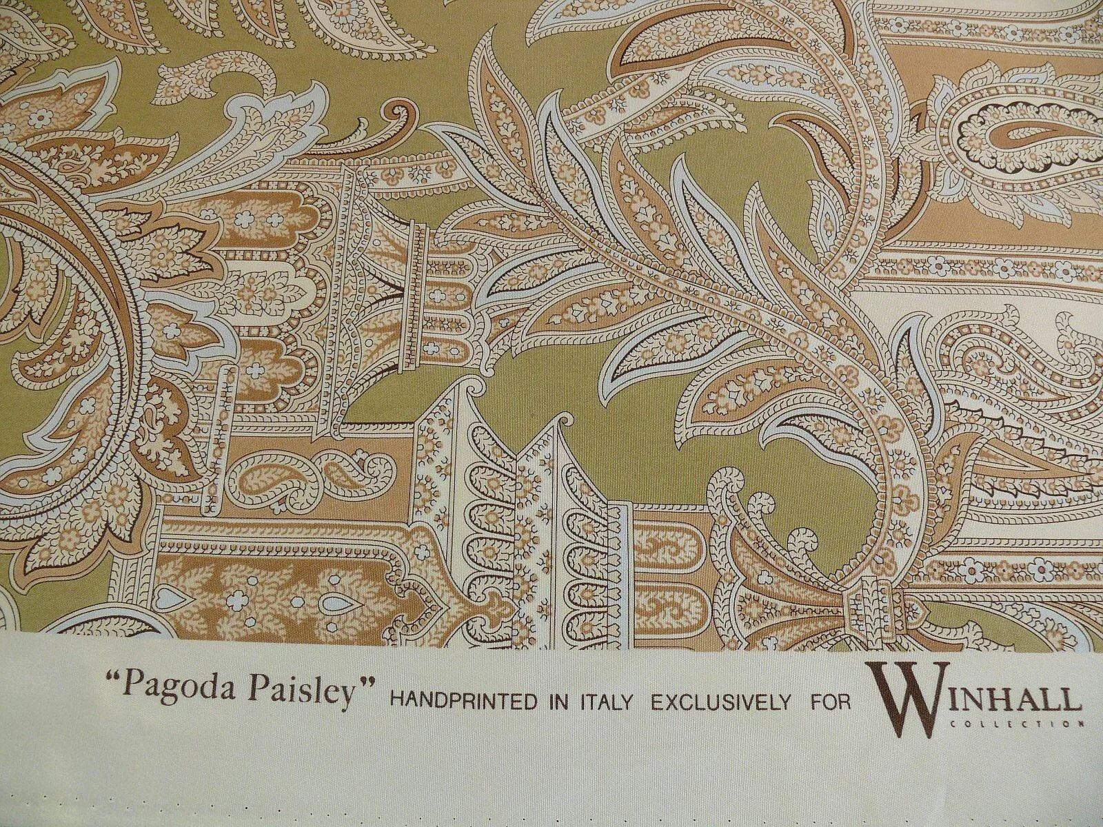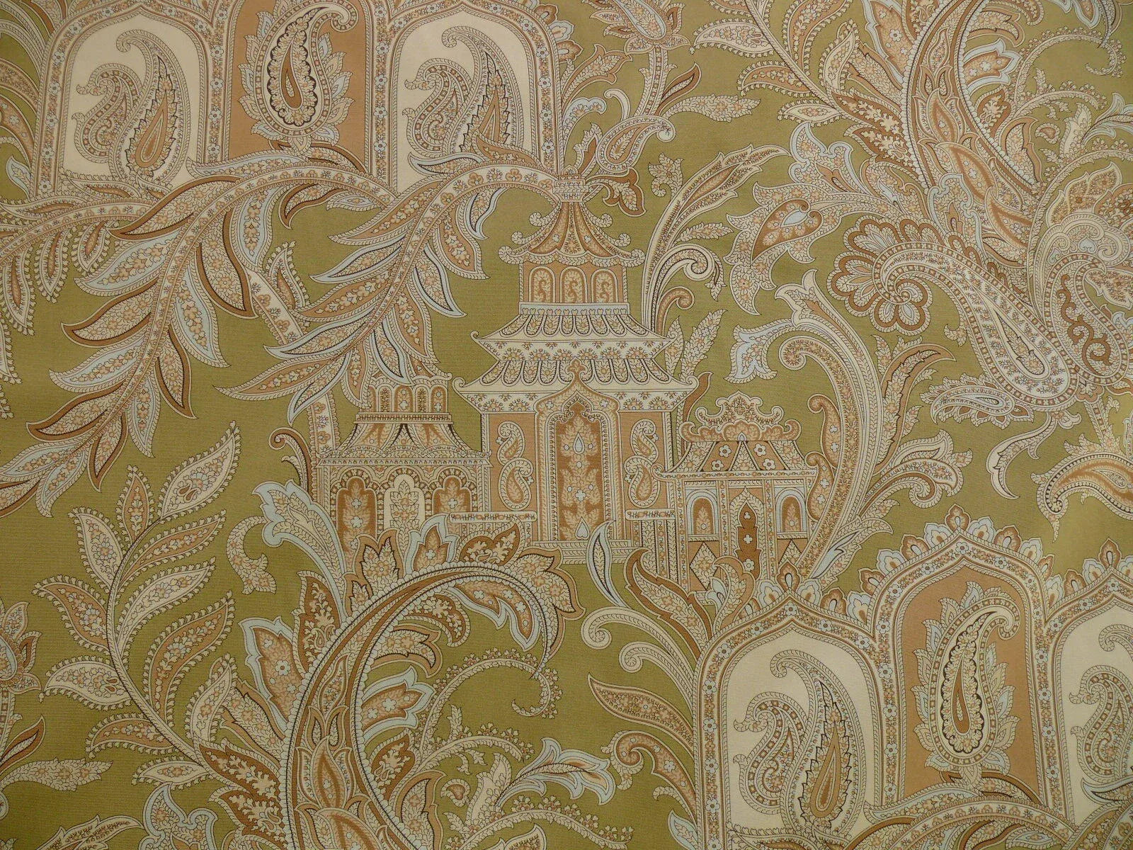 by Scalamandre Pagoda Paisley has both architecture and landscape. Highly detailed botanical elements surround decorative pagodas and Arabesque gates. The lines are so fine that only the best mill in Italy can achieve such precision. The cotton percale has to be the highest quality so the fine fiber can absorb the dye properly. The percale also offers the perfect balance of softness and durability. It is durable enough for medium to heavy duty upholstery yet light weight enough for shirting and other garments! Richly detailed high quality Italian hand print cotton PAGODA PAISLEY sku: WF190-002 100% Cotton Color: Green Approx Width: 54" Approx Rpt: V. 27, H. 27 MSRP $198/YD years ago. Such Italian cotton print now retails for about $350+/yard. |