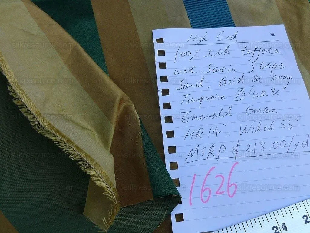By Yd Designer 100% Silk Taffeta Stripe Satin Rib Turquoise Emerald Green Gold