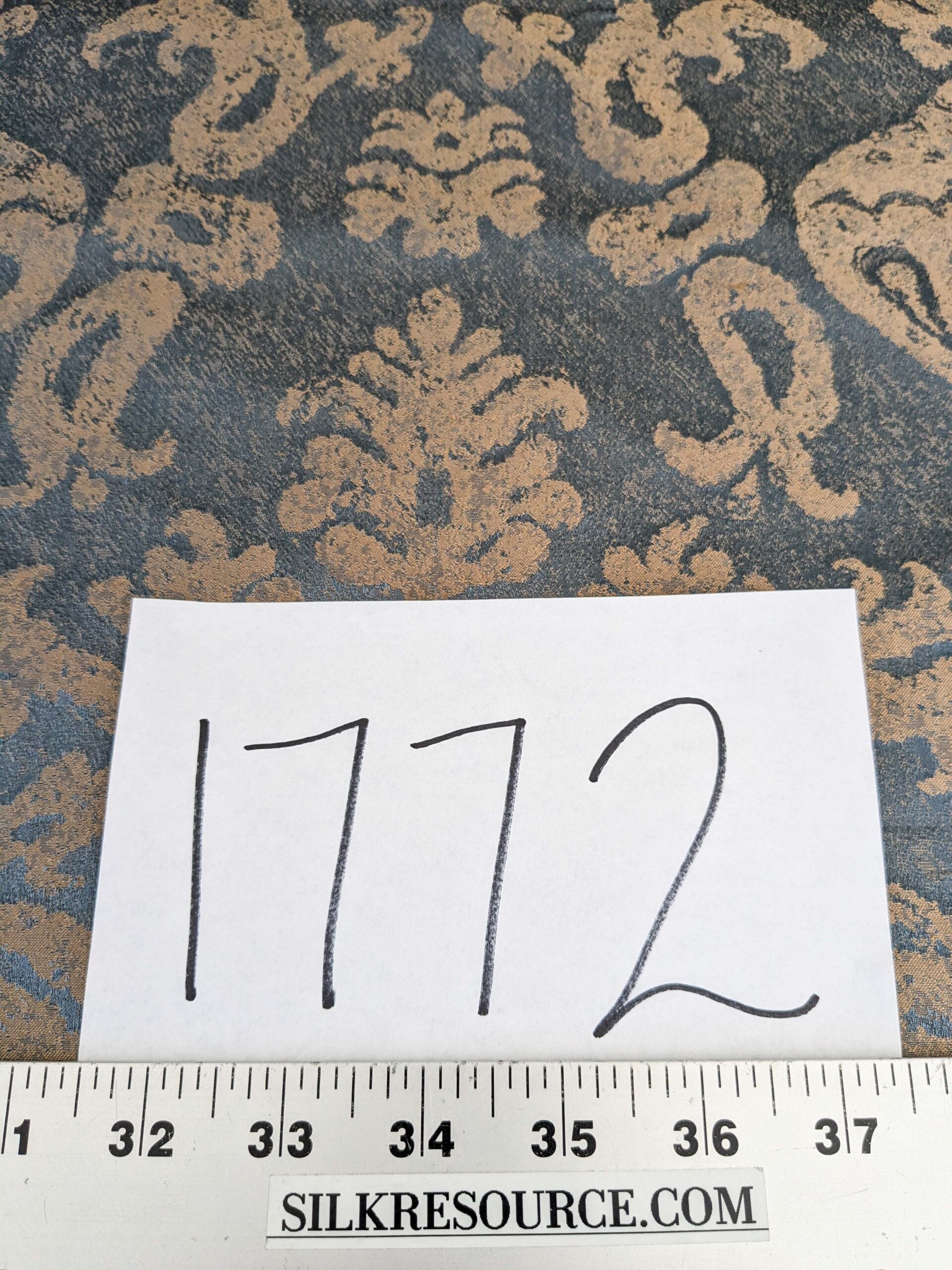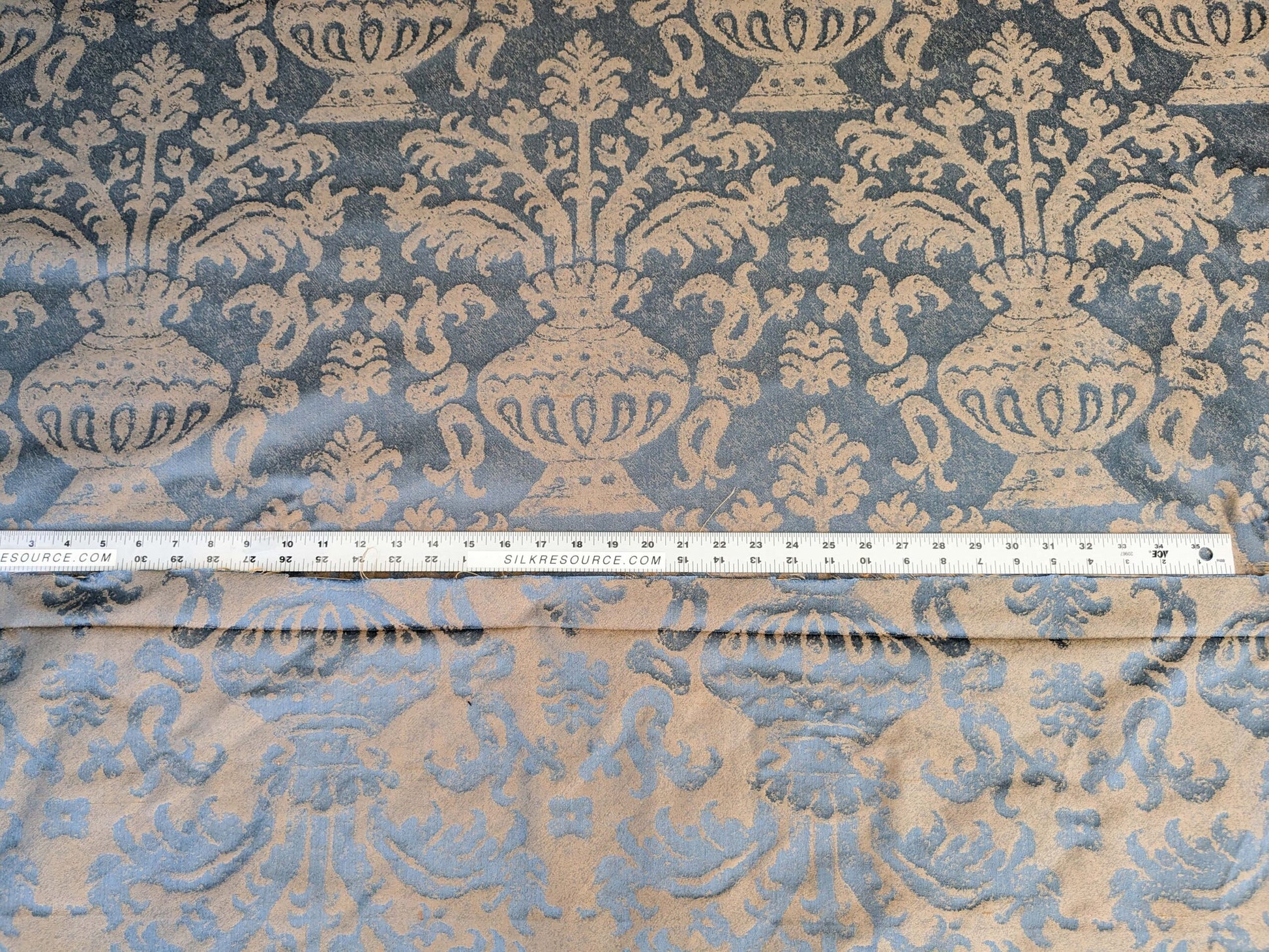 Chinoisery Flower in Vase Bronze Age 100% Silk Damask Blue Gold Radiance! Highest Quality MSRP USD 400+/Yard