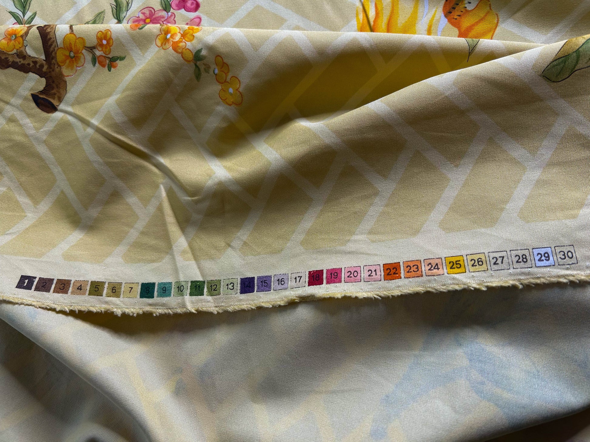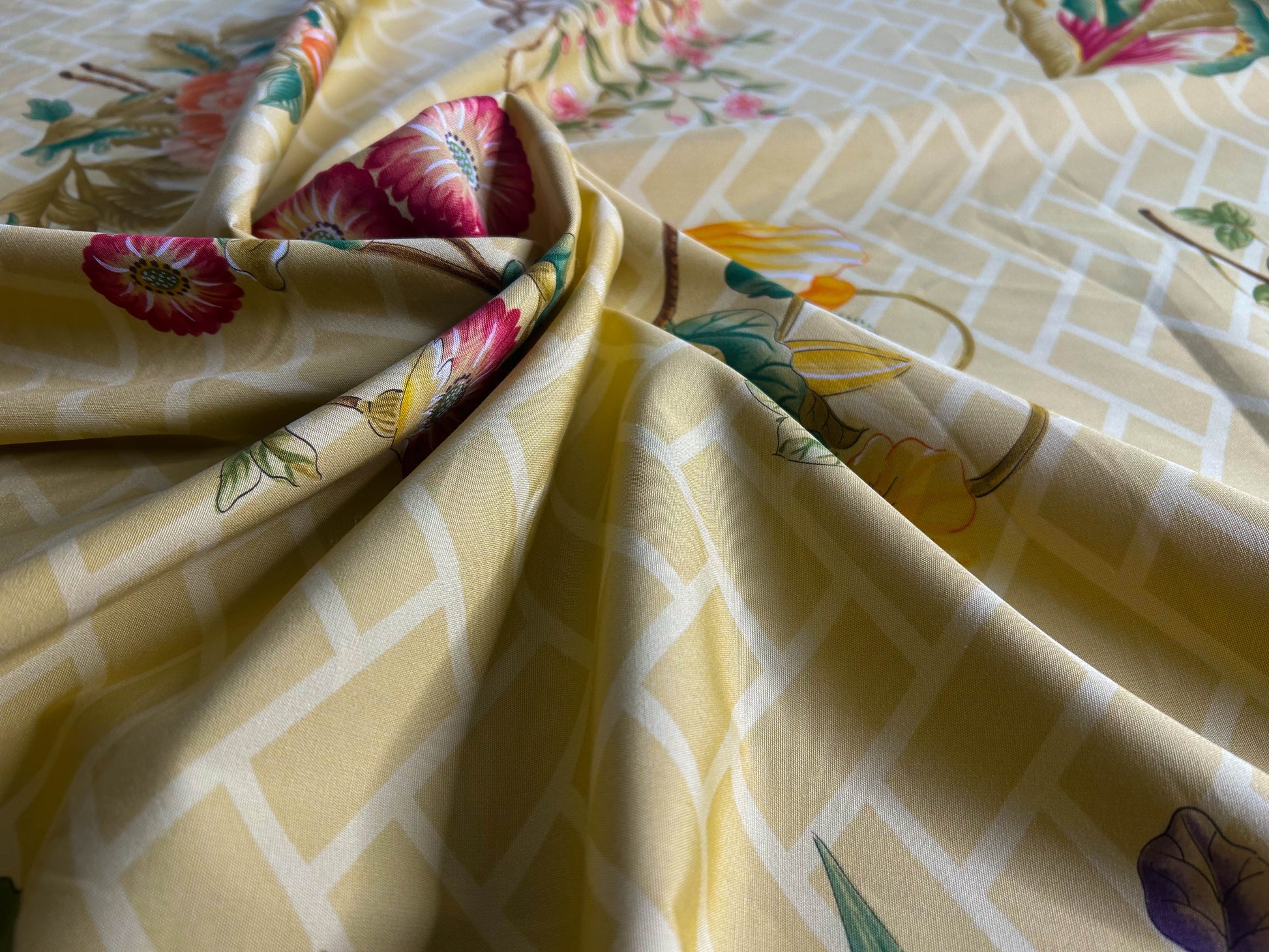 Clarence House la Belle Saison Print Cotton Yellow Mustard Botany Lotus Jasmine Iris Peony Lily Kazumi Asian Botanic Study 30 Screens! - By Vertical Repeats