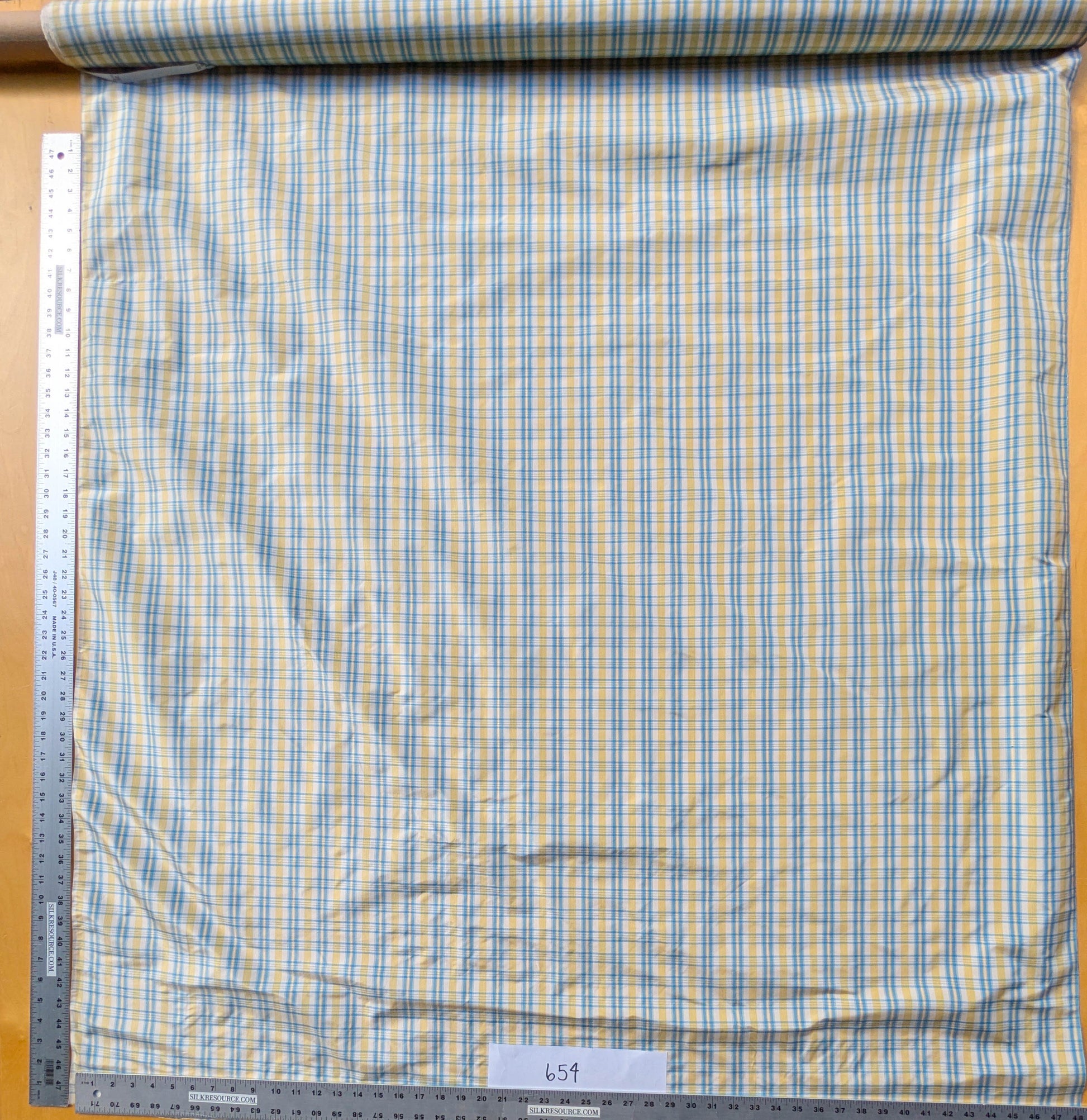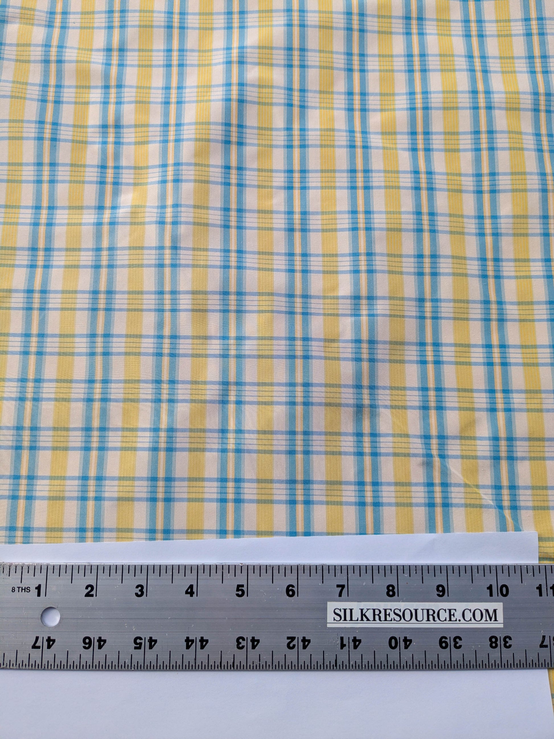 Coraggio Silk Taffeta Plaid Fabric - Yellow Blue White - By The Yard