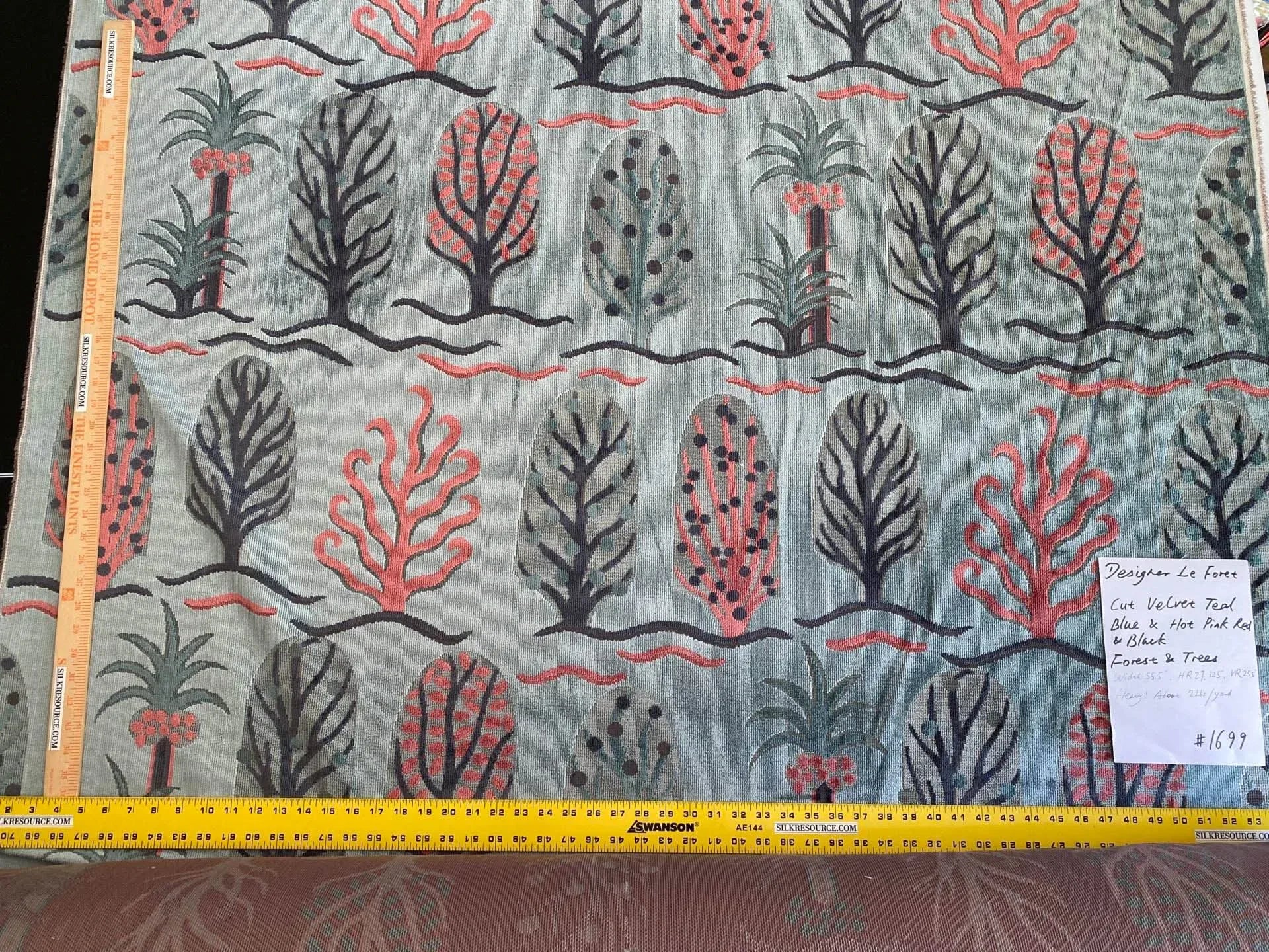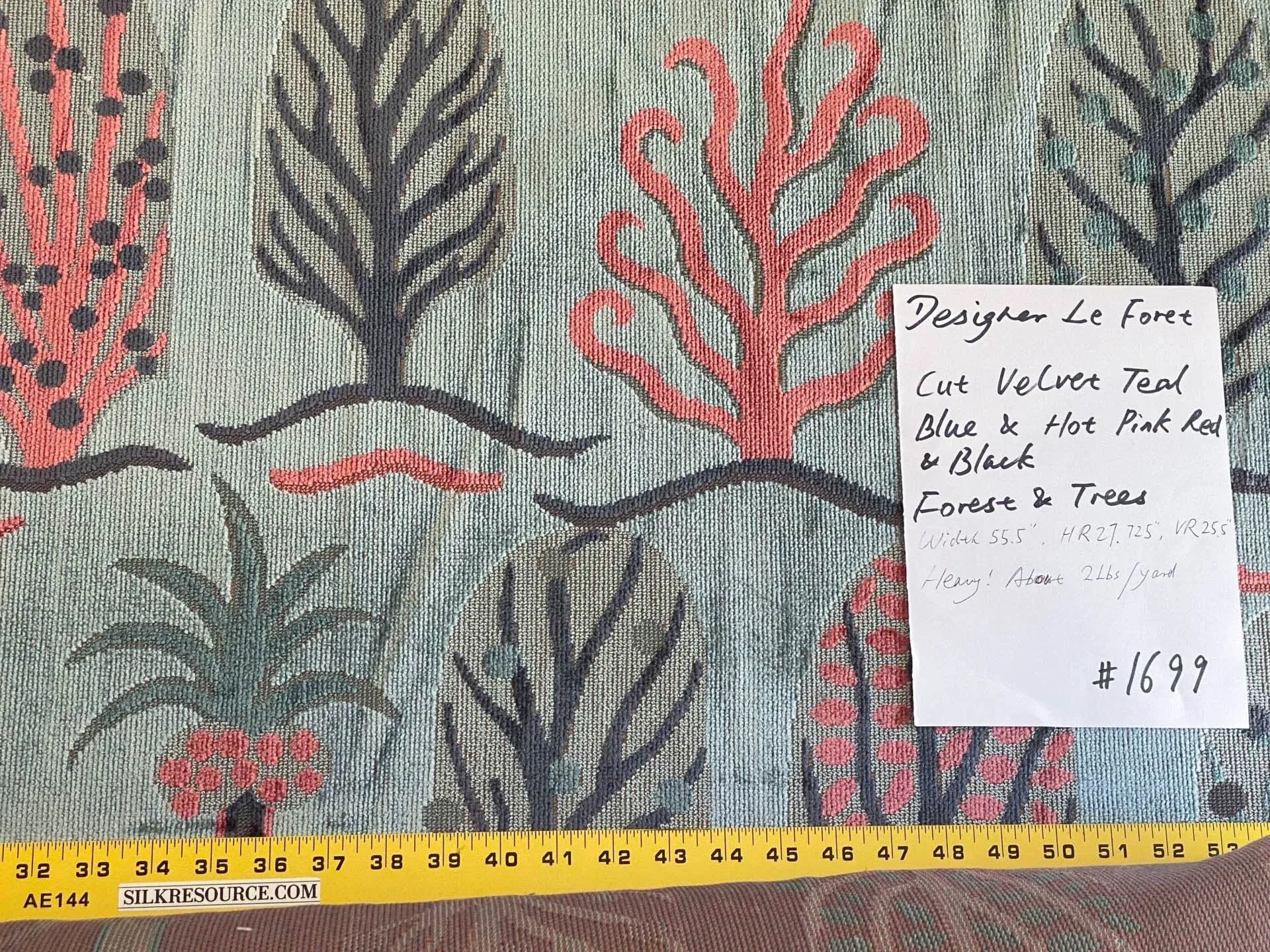 Designer Cut Velvet Le Foret Tree Fairy Tale Teal Blue Hot Pink Silky