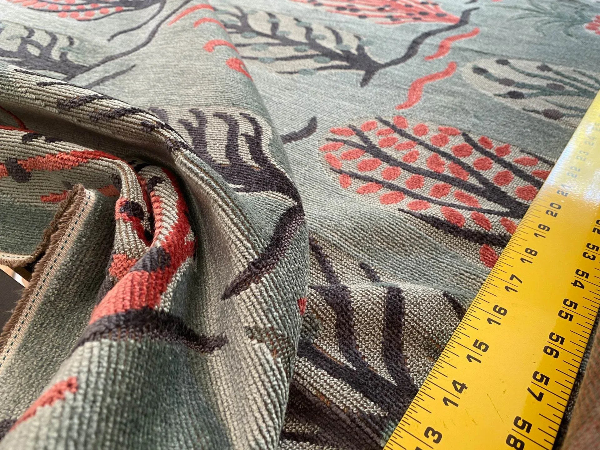 The viscose piles give the velvet a silky hand. Tightly woven and iridescent, this cut velvet is suitable for both upholstery and drapery. The abstract tree motifs eludes a fairy tale feeling that can go into almost any room.