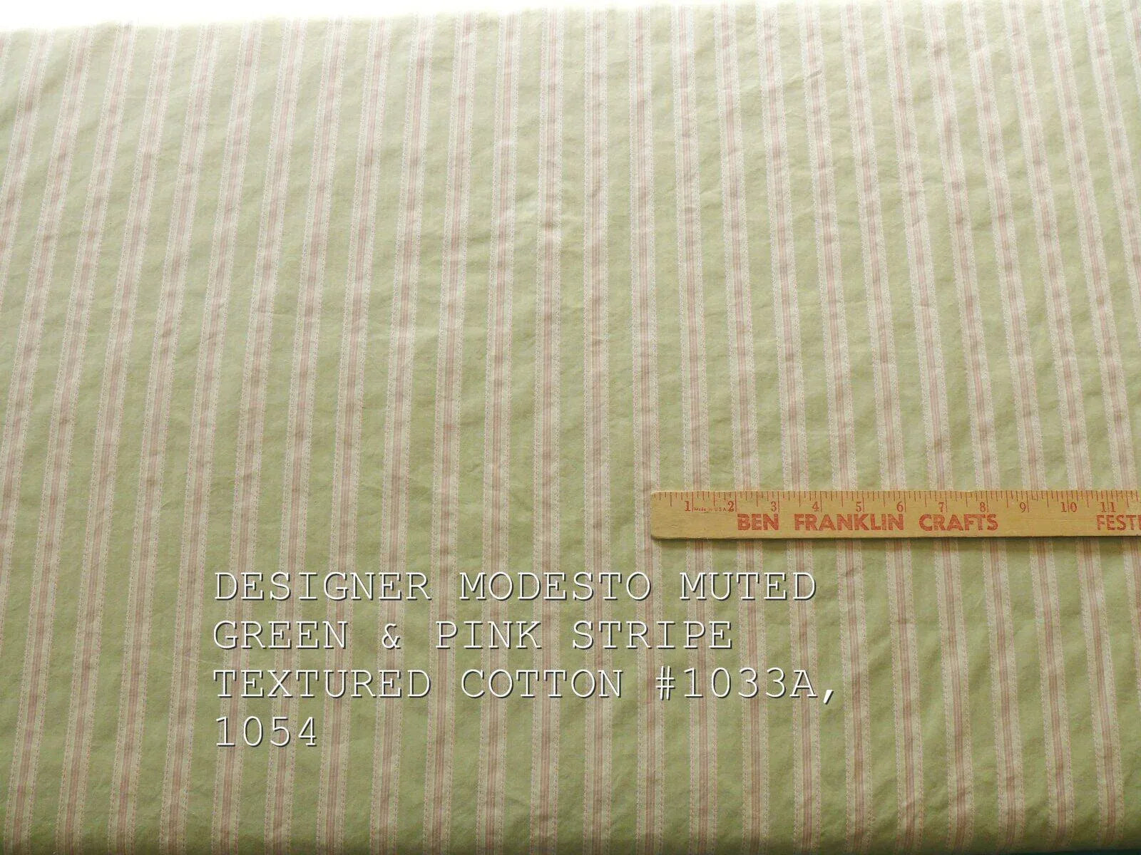 By Yd Designer Modesto Muted Green & Pink Stripe Textured Cotton #1033a, 1054