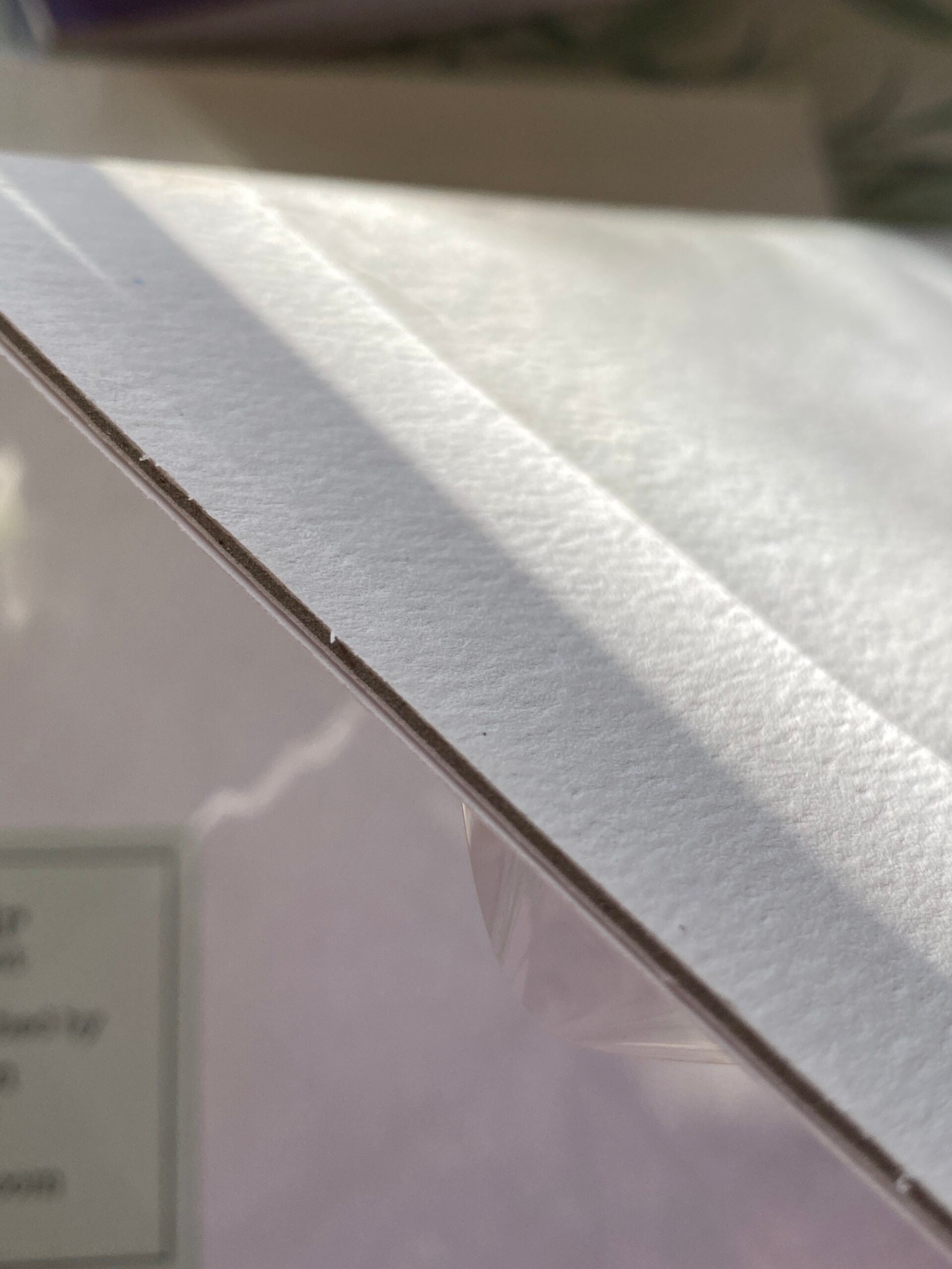 Thick cardboard supports the print. Clear film bag protection.