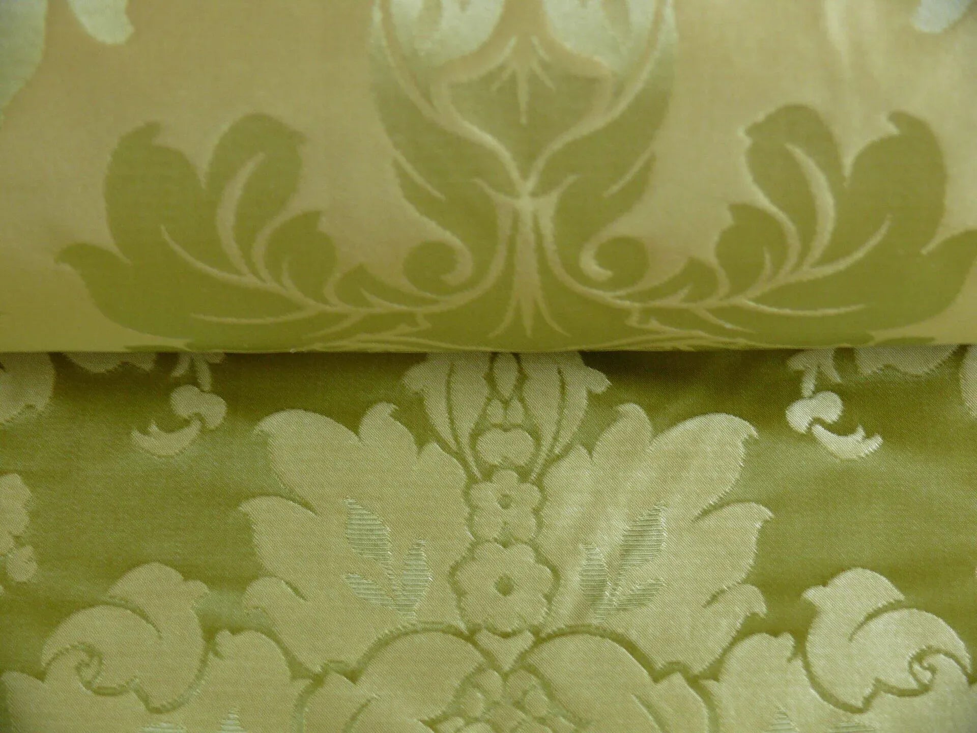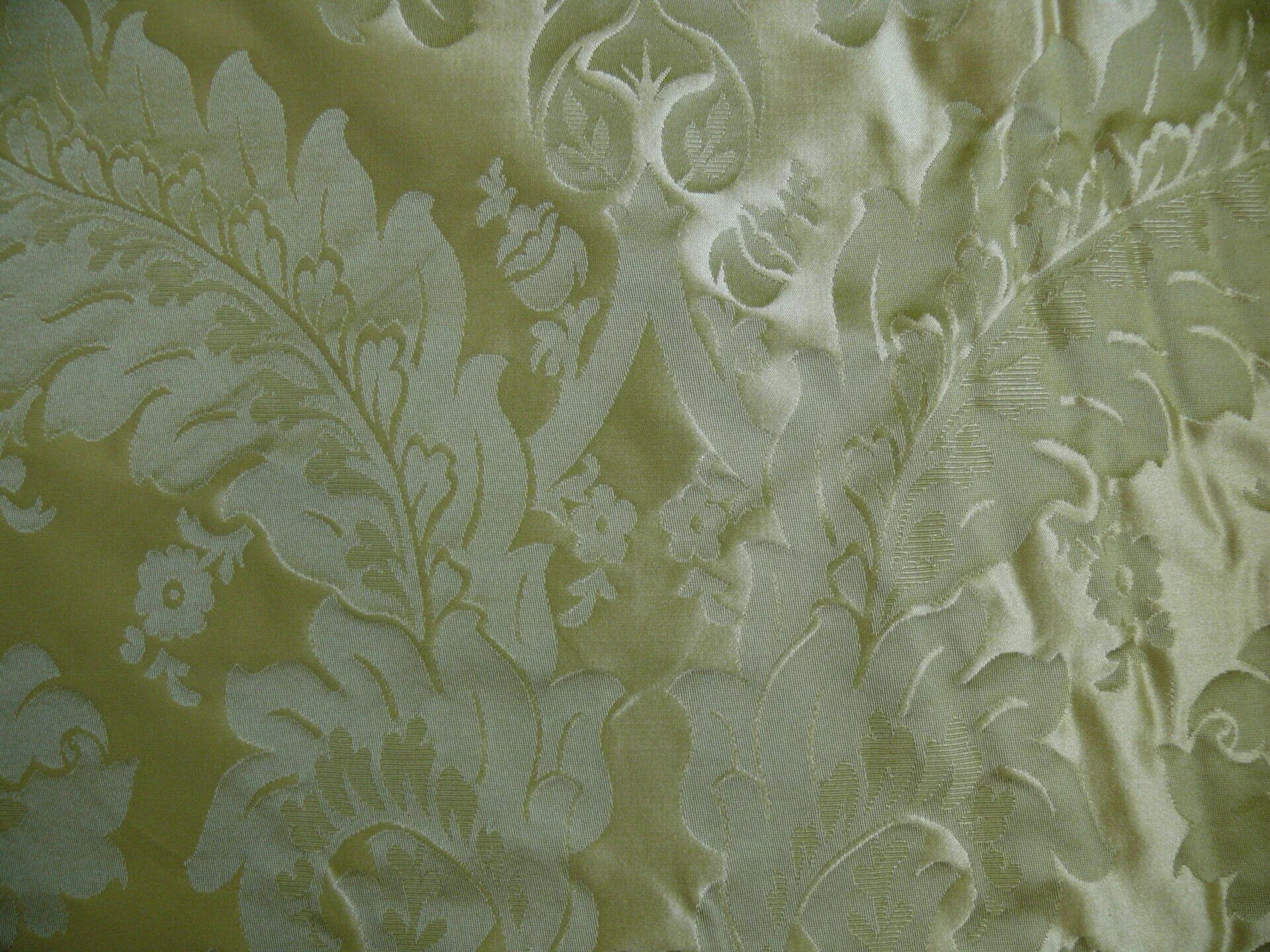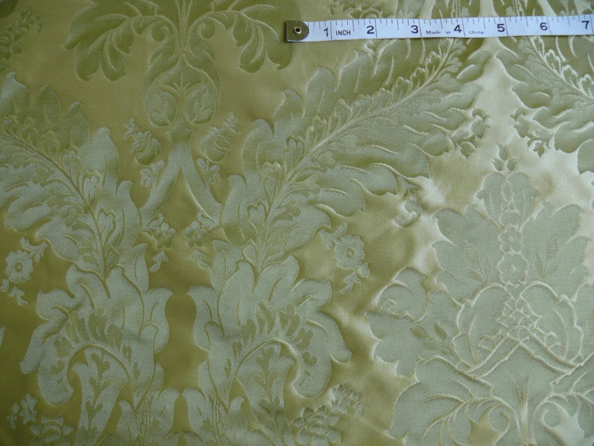 100% Silk Damask Classic Renaissance Lotus Kiwi Green Gold Sparkling By Yard