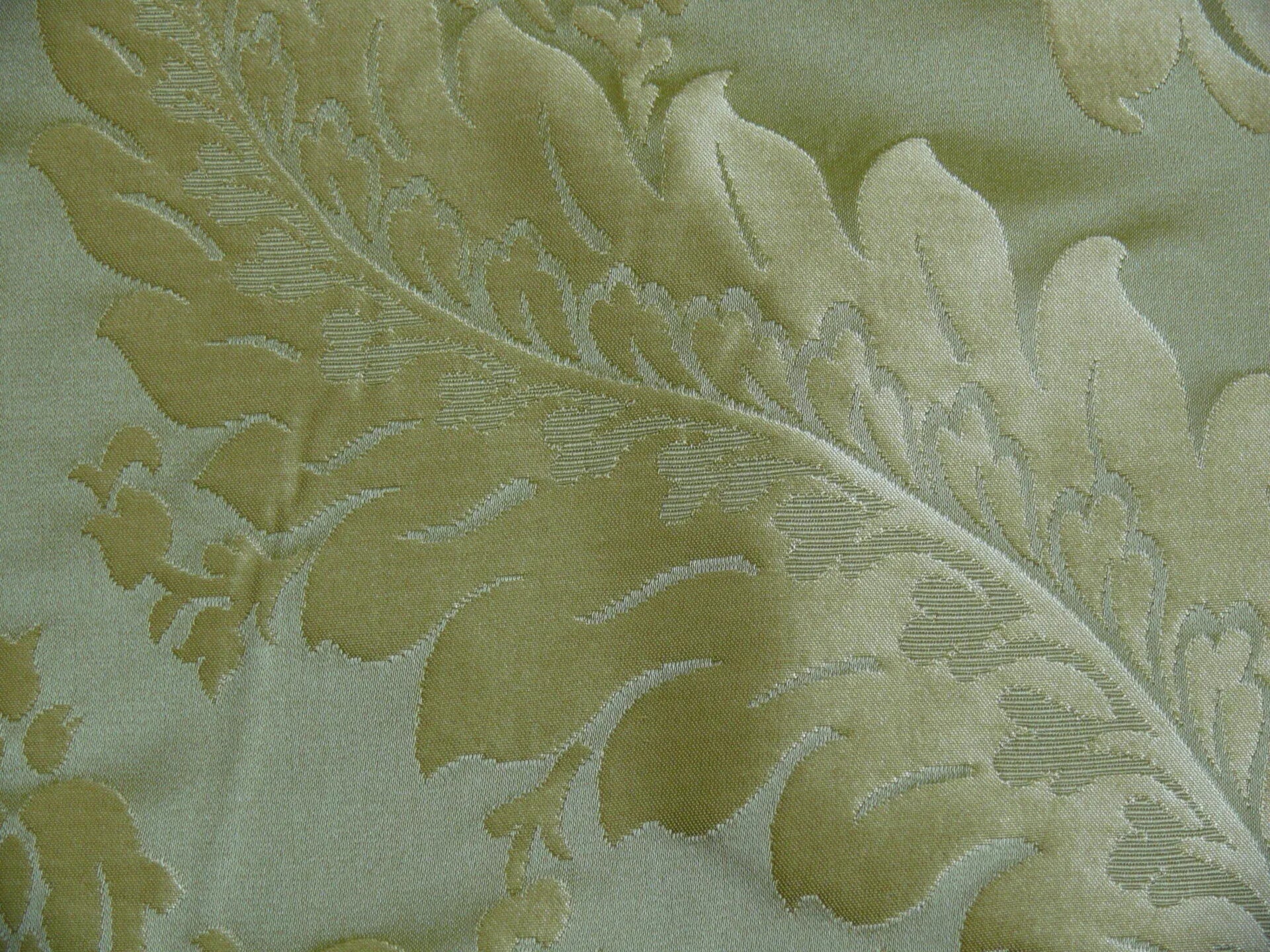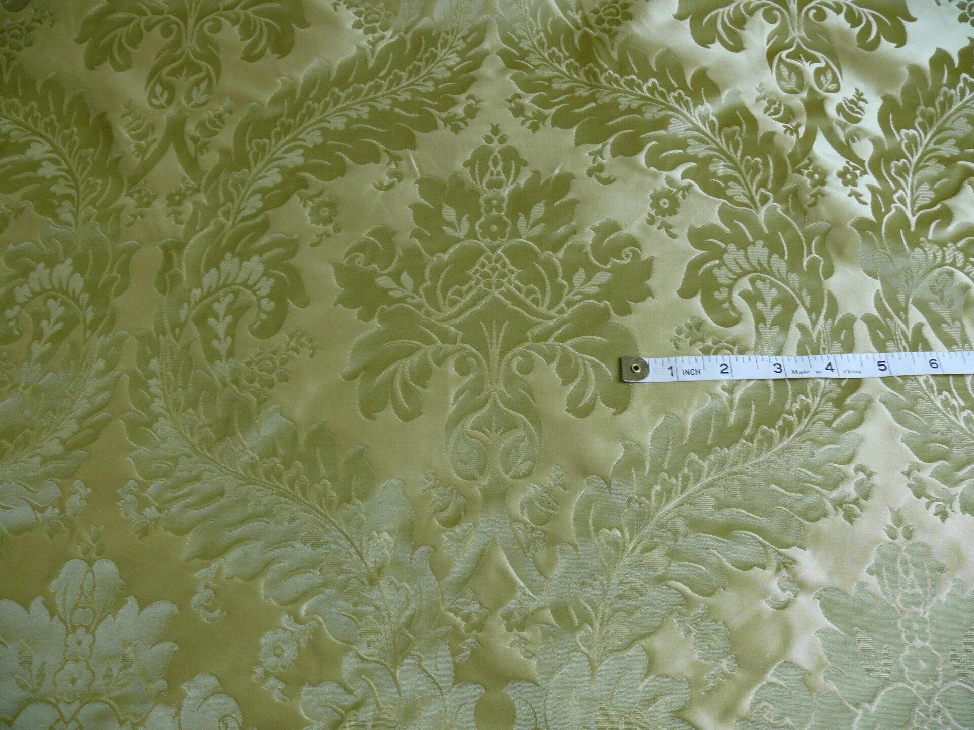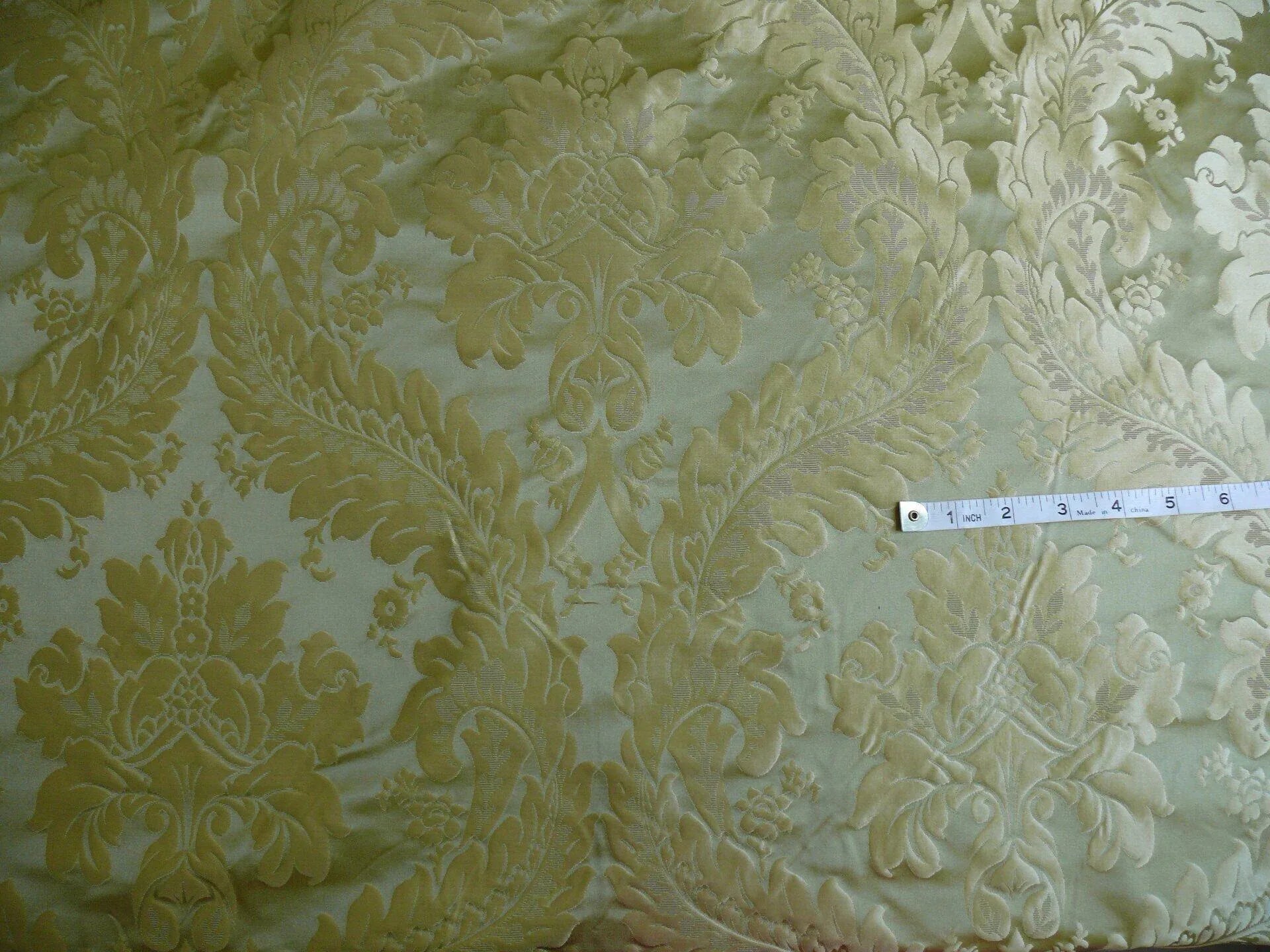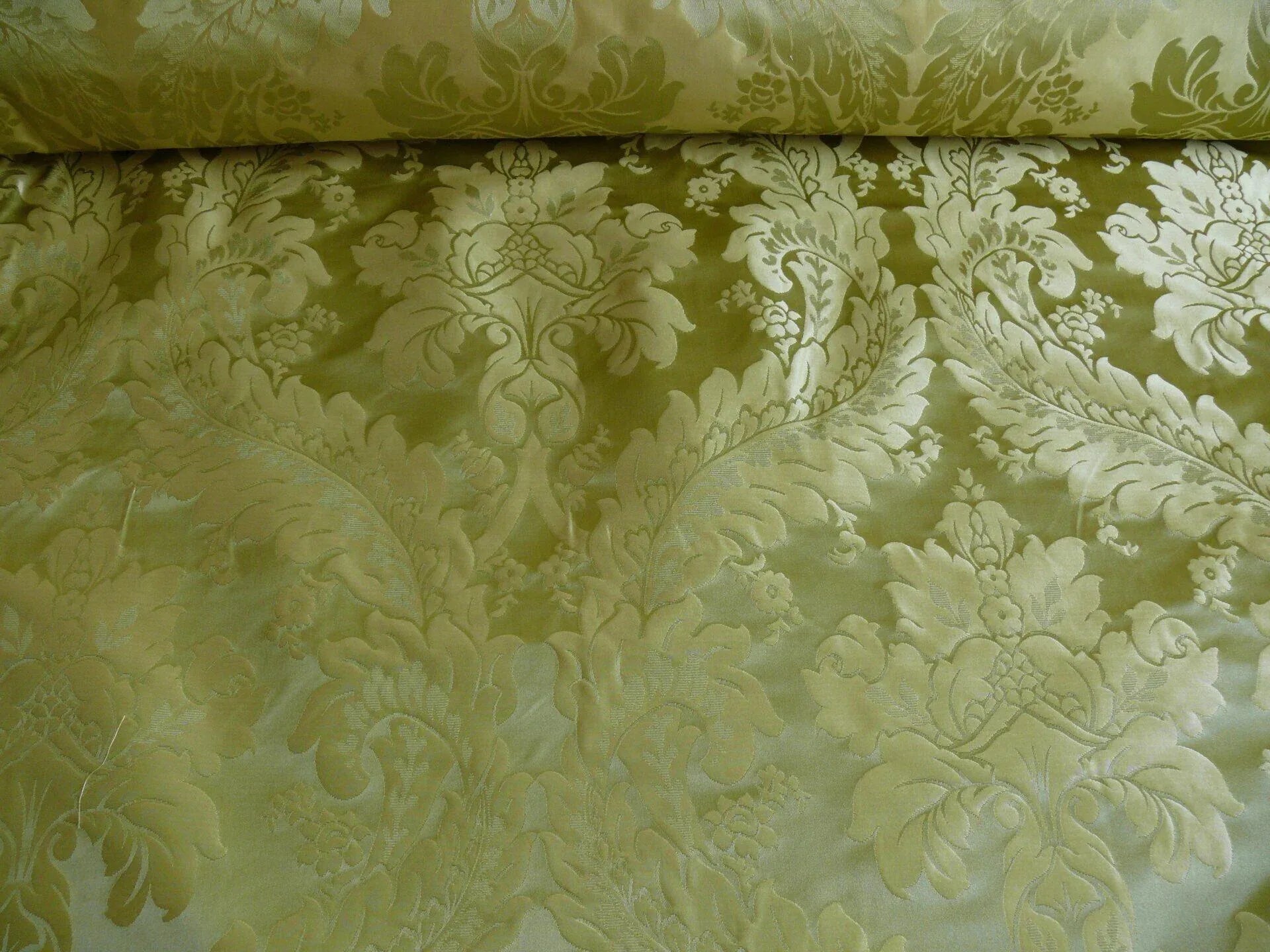 100% Silk Damask Classic Renaissance Lotus Kiwi Green Gold Sparkling By Yard