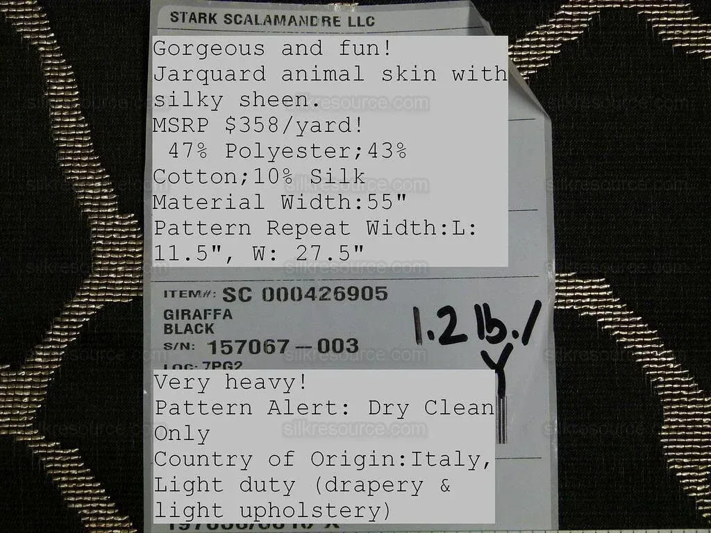 Scalamandre Giraffa Black Giraffe Animal Skin Heavy Silk Jacquard MSRP USD358/y