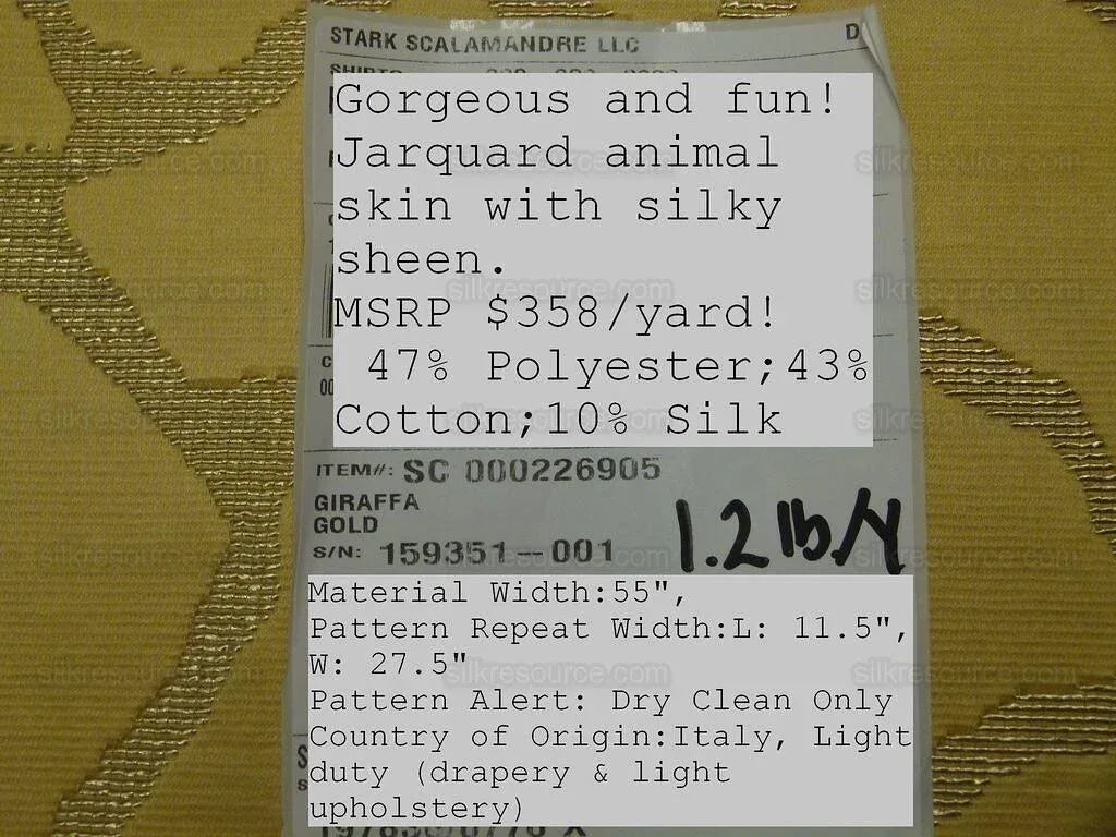 Scalamandre Giraffa Gold Giraffe Animal Heavy Jacquard MSRP USD358/y by yard