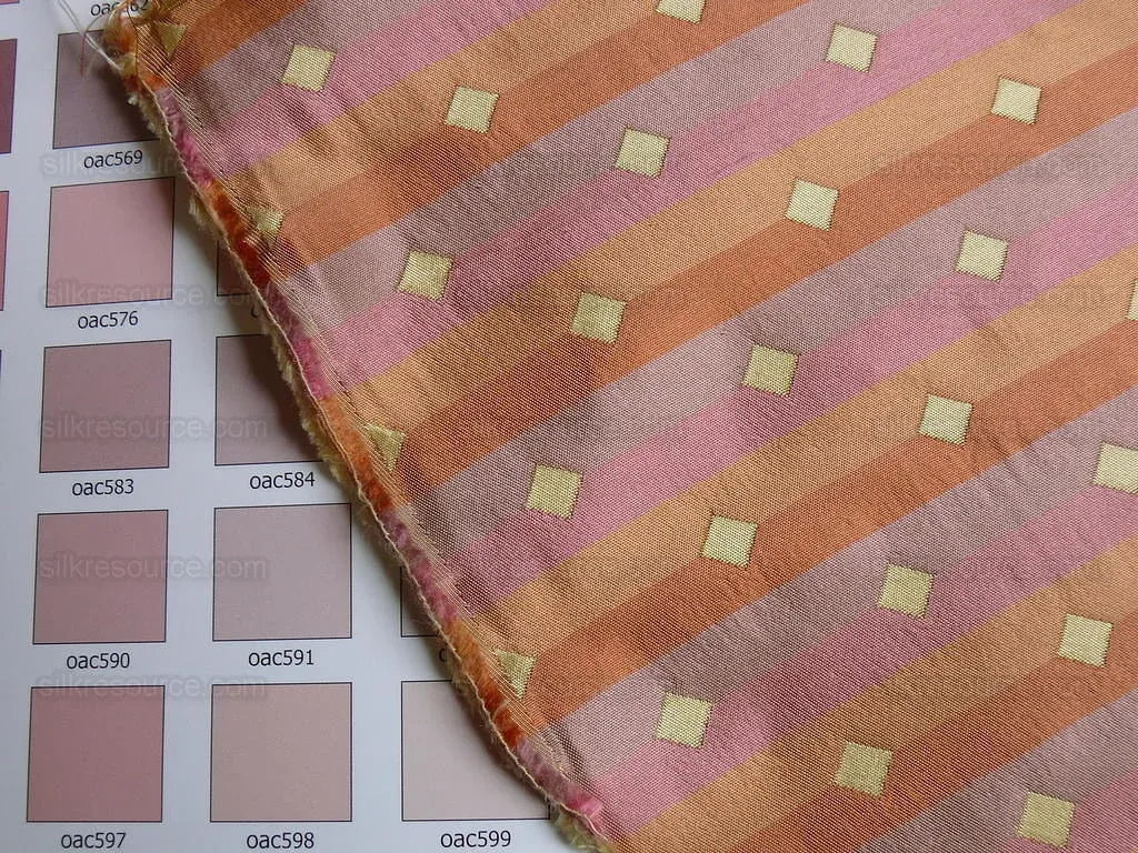 BTY 100% Silk Lampas Diamond Dot "citrus" Yellow Orange Pink Stripe Reversible