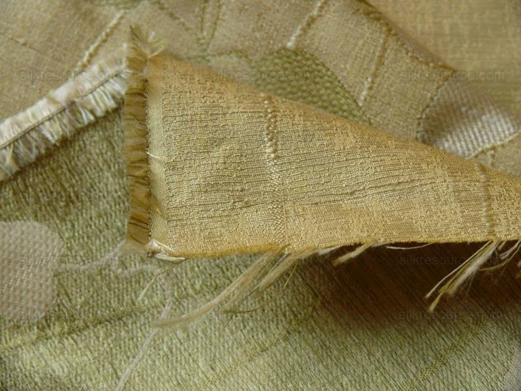 The silk yarn is apparently the best. Tightly woven & superb sheen. Weight: heavy weight for silk. Treated for upholstery. Width: 55.5" (extra wide), HR14", VR27.25" Sold by yard.